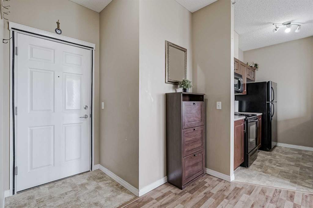Discover the perfect blend of comfort and convenience in this bright and spacious one-bedroom condo at Bella Casa. Situated on the top floor, this corner unit offers an open layout with 9 ft. ceilings and plenty of natural light. The kitchen features ample cabinetry and a raised breakfast bar, opening into a cozy living room complete with an electric fireplace. Step outside onto your private balcony to enjoy breathtaking views of downtown Calgary and the mountains. The generous primary bedroom includes a walk-through “His & Hers” closet leading to a 4-piece bathroom. This home also comes with titled underground parking, plus visitor and handicapped parking for your guests. Bella Casa residents enjoy access to a central courtyard with a gazebo and BBQ area, perfect for relaxing or entertaining. The building is pet-friendly (with board approval) and ideally located close to shops, restaurants, and transit, with quick access to downtown Calgary. Condo fees conveniently cover all utilities except electricity. Available for immediate possession – don’t miss this opportunity to make Bella Casa your new home.