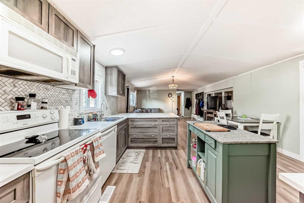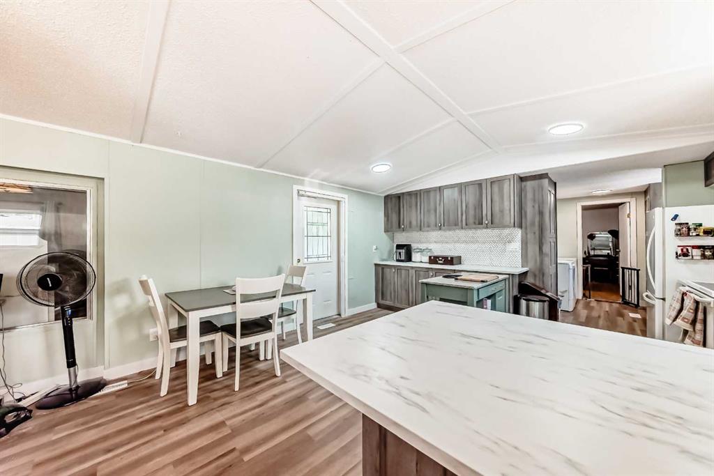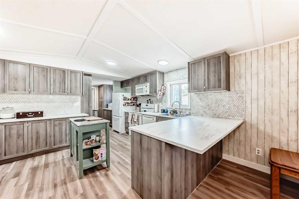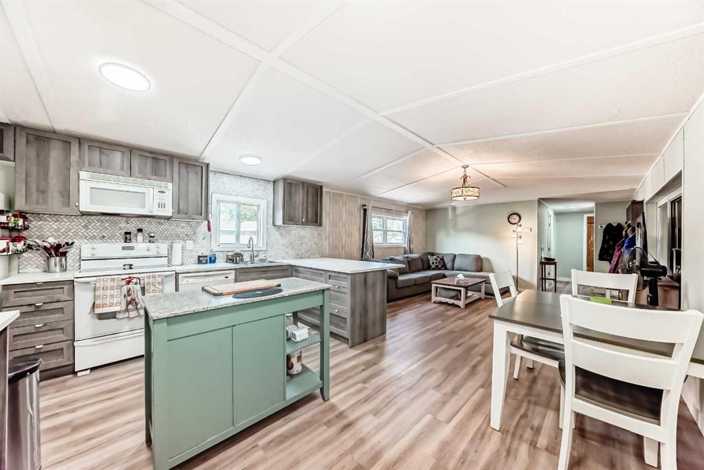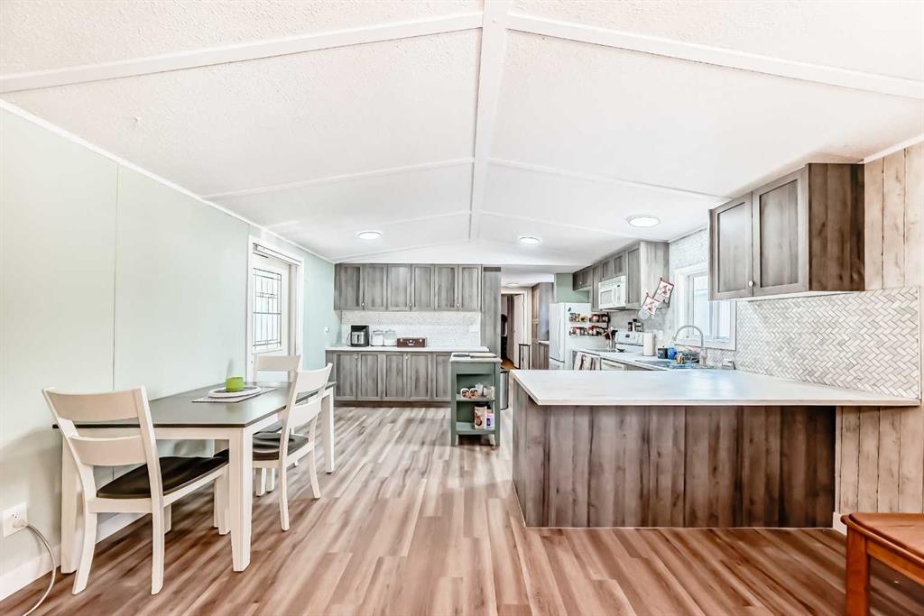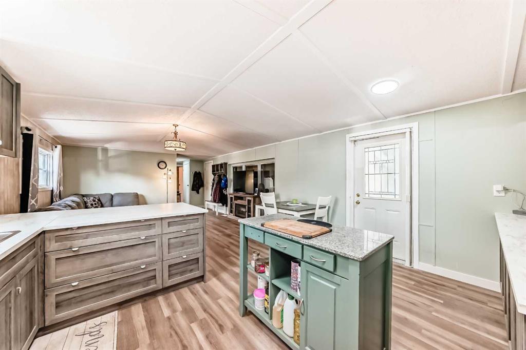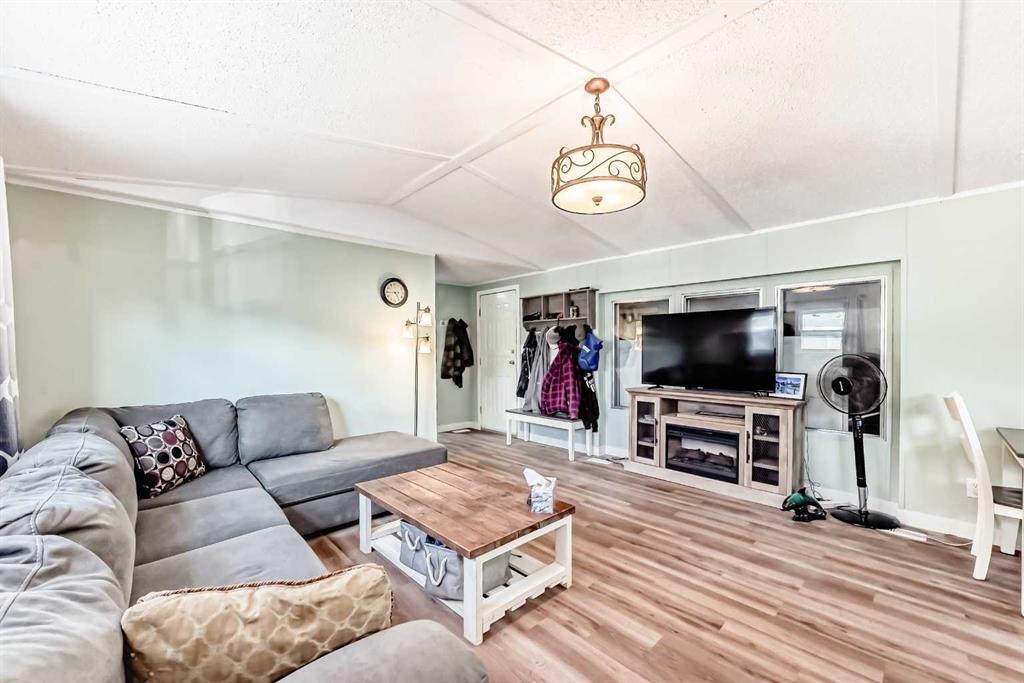 If you\'re looking for WOW factor at an affordable price, this home is it. Located in one of the most desirable adult (16+) mobile home communities in Calgary, this 3 bed/2 bath home with heated addition has been updated; most of the interior upgrades have been done in the last 5 years. When you enter the home, you\'ll note the open living space that\'s perfect for family gatherings or entertaining. Always short of storage space in your kitchen? This well planned kitchen has cupboard space to spare. There is a large primary bedroom at one end of the home with a 4 piece ensuite bath. At the other end of the home are two more bedrooms and another 4 piece bath. The heated addition makes a great flex xpace for storage or workshop. Outside you\'ll appreciate the built in storage shed and a 2nd storage shed at the back of the home. This home has been well maintained over the years with big ticket items such as new vinyl plank flooring, vinyl windows in the past 5 years, hot water tank (2025), furnace (2024) and freshly painted celiling. Lot fee is $820/month which includes landscaping, snow removal, waste and recycling services. Pet restrictions are 2 pets per home, dogs must be less than 15 inches tall at the shoulder. Parkridge Estates has an active community association ($25/year) with many regular events for residents such as weekly pub night, coffee meetings and jam sessions.