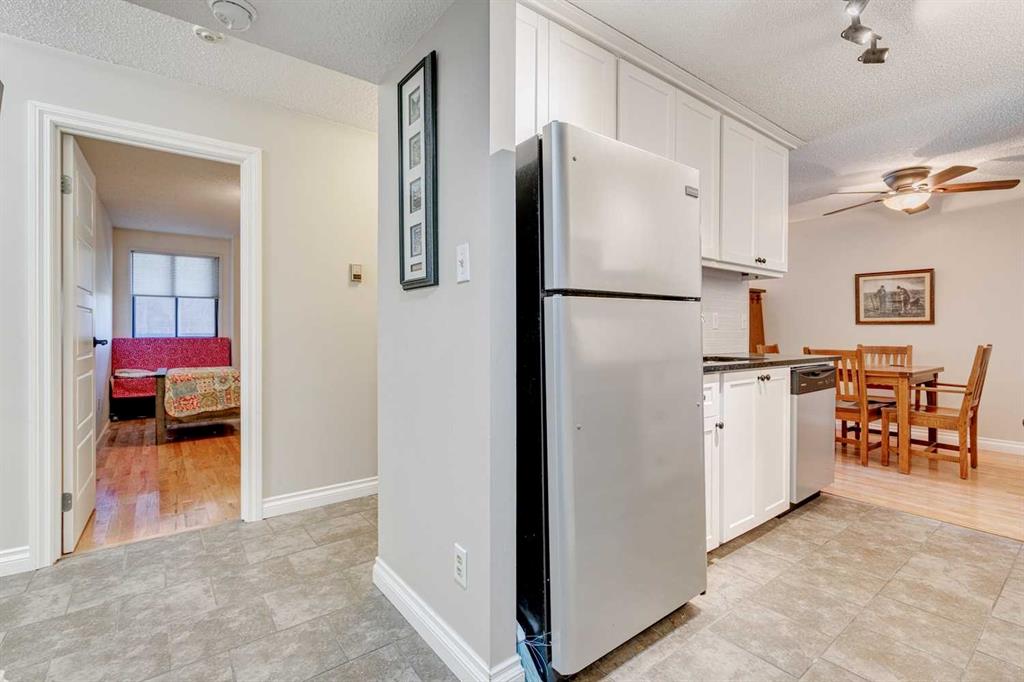 Welcome to Nine Eight Hundred, an 18+ concrete building designed for comfort, convenience, and a vibrant lifestyle in the sought-after community of Haysboro. This move-in-ready 880 Sq. Ft. condo offers Two bedrooms and an updated interior. The Hardwood floors throughout compliment the Kitchen with White cabinets, granite counters and stainless steel appliances. The dining connects to the spacious living room where floor to ceiling sliding doors open to the SUNNY 32 Ft. West facing balcony-perfect for relaxing or entertaining. The large primary bedroom can easily accommodate a King-size Bed, while the second bedroom offers flexibility for guests of a home office. A renovated 4 pce bathroom and a generous storage / Laundry area with a Brand New Washer/ Dryer complete this inviting home. Residents enjoy exceptional amenities, including a fitness room, library, and social room, as well as the added convenience of an on-site concierge available 4 hours a day, 5 days a week. Condo fees cover heat, electricity, water and sewer, making this an excellent opportunity for empty nesters, first-time buyers or investors looking for value, serenity, and accessibility. Located just steps from Southland Crossing, you will have easy access to shops, services, and restaurants. This prime location is only a 7-minute walk to the Southland LRT and a short 5 minute drive to the Southland Leisure Centre and Southcentre Mall.