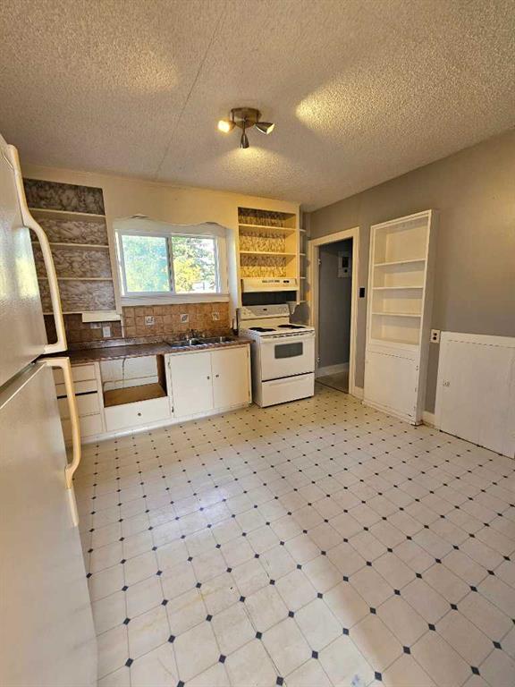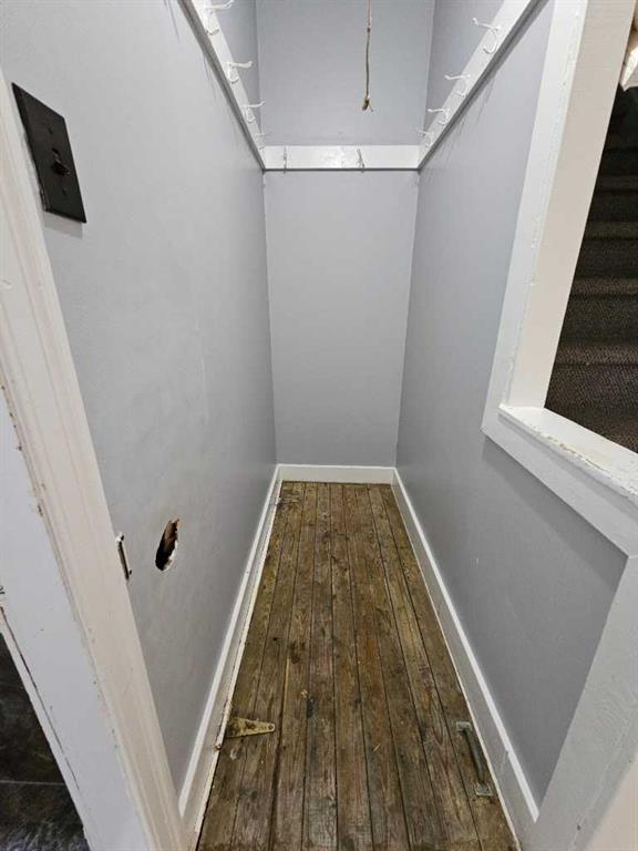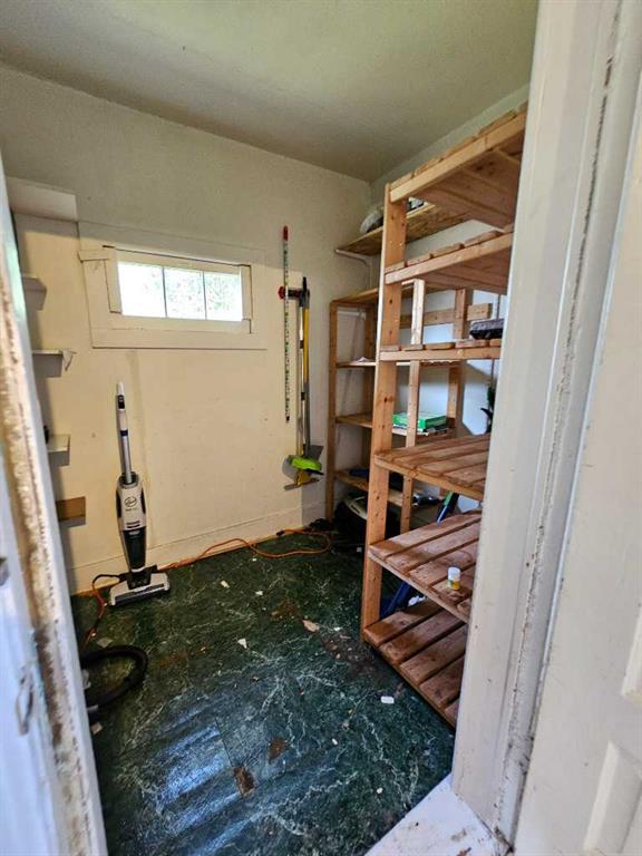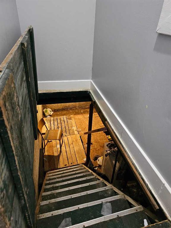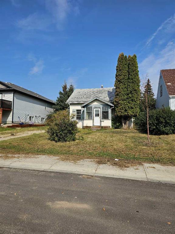 Investor Alert! With near zero vacancies in Grande Prairie, this property may be the one you have been waiting for, to add to your rental portfolio. This one and half storey home offers a main floor bedroom with access to a full bath. The upstairs offers two more bedrooms. In addition, there is a porch leading to the front entrance and a side room off the kitchen that would work well as a pantry. The laundry and mechanical area are located in the undeveloped partial basement. The home’s cast iron plumbing has been replaced with pec/abs type plumbing, some of the flooring has been updated to vinyl plank, the hot water tank was replaced in 2023 and the furnace around 2010. The home is located on a 50 x 120-foot lot, with rear alley access. If you are looking for an area where you can do a new build, the land is zoned RO – Residential Transition District, which allows duplexes and secondary suites, among other permitted and discretionary uses. The property is located one block east of Hillside School, a playground and outdoor skating rink. It should be noted that the home is a 1.5 storey home with the second level having a ceiling height that falls two inches below RECA’s current RMS guidelines of seven feet. Therefore, the square footage of the upper level has not been included in the RMS, nor has the area of the unheated front porch and former side entrance coming off the kitchen. If these three areas had been included that would have brought the square footage more in line with the City’s assessment record of 1131 square feet.