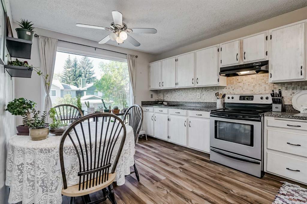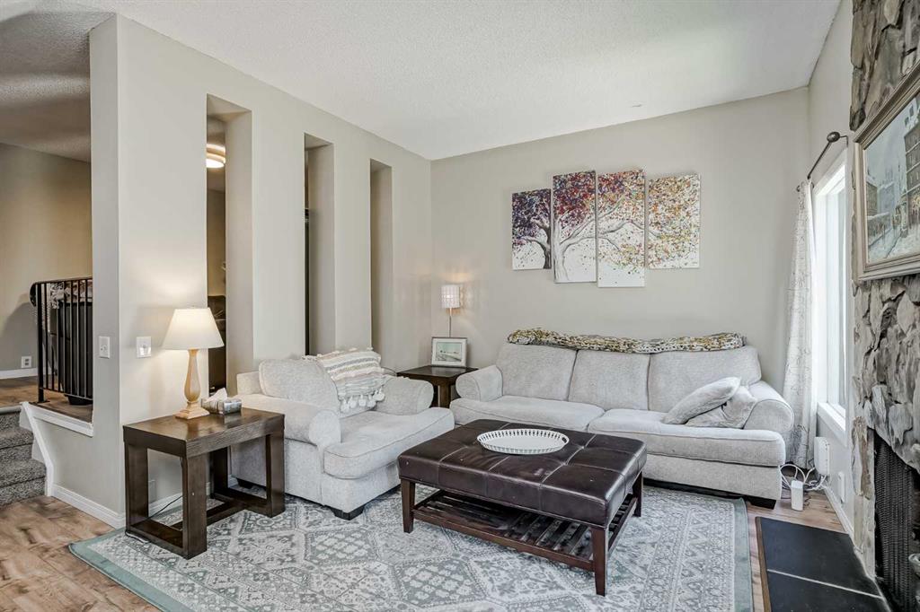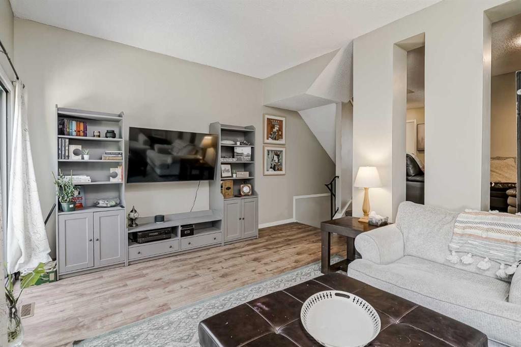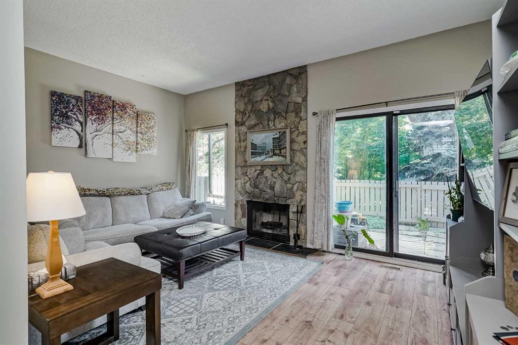 Welcome to your new home in the heart of Midnapore, a coveted lake community! This spacious 2-story townhome offers over 1,500 square feet of comfortable living space. Situated in a prime location, this unit is ready for its new owners to move in and enjoy. As you approach, you\'ll notice the single-car garage, and an additional parking space on the driveway. The main entrance provides convenient access to the garage and a multi-purpose room on the lower level, which includes a laundry area and extra storage. The main floor is designed for both relaxation and entertaining. The expansive living room features soaring 10-foot ceilings, a cozy wood-burning fireplace, and abundant natural light from the sliding glass doors that lead out to a private patio. Adjacent to the living room is a formal dining space that can accommodate a full-sized table. Additionally, this space can be utilized as a secondary living area or office! The large kitchen is equipped with stainless steel appliances, plenty of cupboard and counter space and large windows. A half-bathroom with extra storage space or capacity to fit a shower (with board approval) completes this level. Upstairs, you\'ll find a massive primary bedroom retreat with a walk-through closet and a cheater bathroom. There are also two additional large bedrooms, providing plenty of space for family or guests. For added convenience the laminate flooring is newly installed. This home\'s location is unbeatable! You\'re just a 3-minute drive to Midnapore Lake, a 2-minute walk to a variety of shops and restaurants, and a quick walk to parks and schools. Commuting is a breeze with a short bus ride to the LRT. Don\'t miss this opportunity to own a beautiful home in a fantastic community!