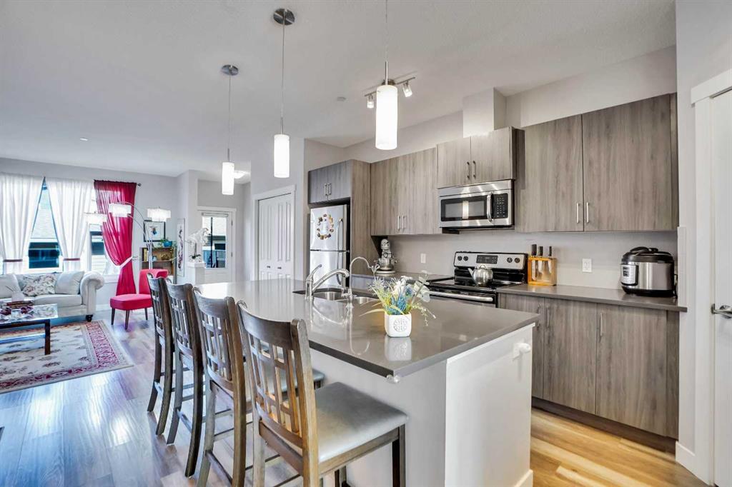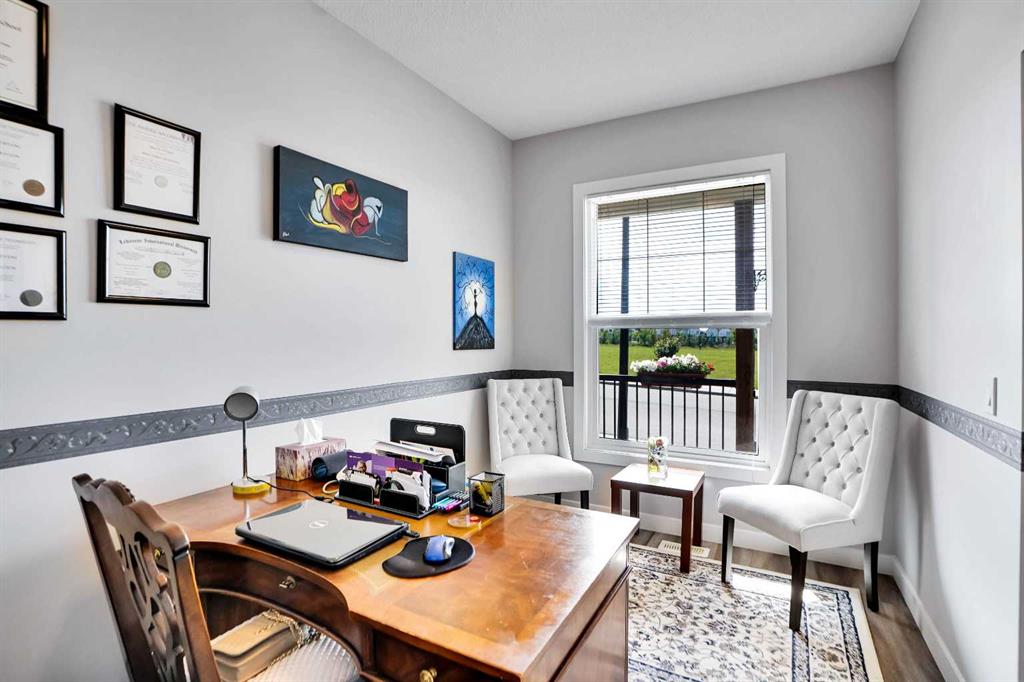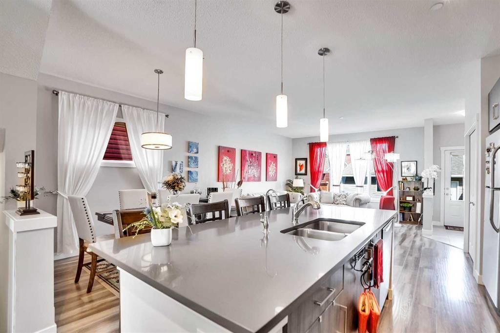 Seller negotiable. Immaculate, original owner, Brookfield built home. It is the perfect blend of style, comfort, and functionality. Pride of ownership is evident the moment you step inside. Perfectly located across from a serene green space with an unobstructed view, and a future school potential. Step inside and feel the difference. 9 foot ceilings with water sprinklers, rich Laminate flooring, and abundance of natural west facing light creating a warm and welcoming atmosphere. The thoughtfully designed main floor features a private front den, an elegant dining area, a stylish kitchen with quartz countertops and ample cabinetry, a spacious living room, and a guest bathroom, all creating a functional layout for every day living. Up the stairs and to the second floor, enjoy a central bonus room perfect for family movie nights or playtime. A generously sized primary bedroom with a 4- piece en-suite, a spacious walk-in closet, and a balcony overlooking green space to enjoy your morning coffee. Two more bright bedrooms, laundry and a second 3-piece bath. The unfinished basement offers an exciting potential for a future secondary suite subject to city approval and awaits your personal touch. Recent updates include a new roof and siding 2025, hot water tank 2022, and a double detached garage. Situated in a family friendly community with easy access to Stoney Trail, close to grocery stores, cafés, restaurants, and parks. This home is move-in ready and waiting for you. Don\'t miss your chance to own this exceptional home in a growing neighborhood. Go see it for yourself .