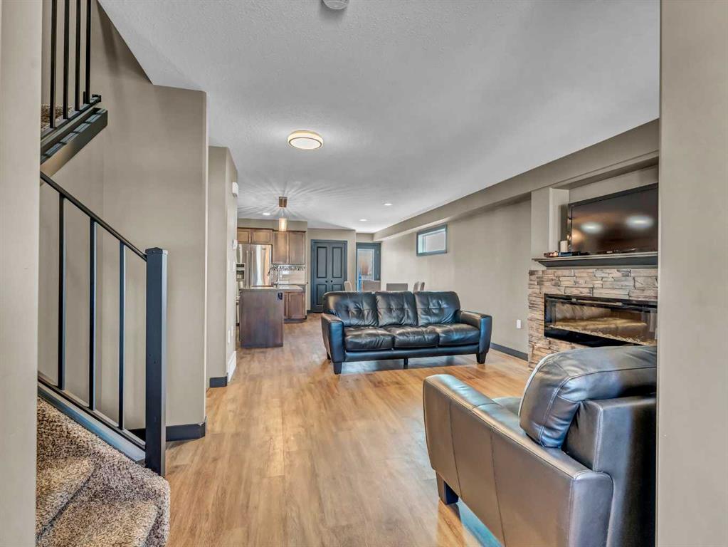 Welcome to this stylish half-duplex, built in 2015, perfectly located close to schools, parks, playgrounds, and all amenities. This side-by-side two-storey home offers a functional layout and thoughtful finishings throughout. On the main floor, you’ll love the open-concept design that flows from the living area, complete with an electric fireplace accented with brick surround, into the spacious dining room. A modern kitchen awaits—with quartz countertops, maple cabinetry, stainless steel appliances, corner pantry, and island. The upper-level features three bedrooms, including a primary suite with a large walk-in closet and ensuite, plus a full four-piece main bath and the convenience of upstairs laundry with stackable units. The partially finished basement offers room to grow, with plenty of storage, a bathroom roughed in and just needing the finishing touches. Outside, enjoy the covered porch out front, fenced yard in the back complete with a deck offering a gas line for your barbecue, and the benefit of a single attached heated garage. With a fantastic location, and move-in-ready appeal, this property is one you won’t want to miss!