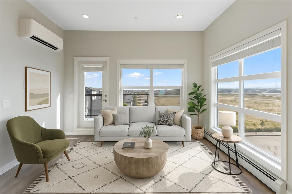 YOU DON’T WANT TO MISS THIS! Discover upscale urban living in this rare top-floor, corner unit in the heart of Seton—one of Calgary’s most vibrant and amenity-rich communities. Boasting nearly 11-foot ceilings, this 2-bedroom, 2-bathroom home feels open and airy, flooding with natural light from its expansive corner windows. The modern floor plan is designed for both comfort and entertaining. A spacious kitchen showcases stainless steel appliances, quartz countertops, sleek cabinetry, and a large island, perfect for cooking or gathering with friends. High-end laminate flooring throughout ties the space together with a warm, stylish finish. The primary suite includes a generous walk-in closet and a private ensuite for your own retreat, while the second bedroom features a cheater ensuite, ideal for family or guests. Practicality meets luxury with TWO titled underground parking stalls—a rare find that ensures year-round comfort and convenience. Even better, this home comes with not just one, but TWO storage lockers, giving you extra space for seasonal items, sports equipment, or household overflow. With rising storage rental costs in Calgary, this added value translates directly into ongoing savings and peace of mind. Seton is known as Calgary’s “downtown of the south,” offering everything you need right at your doorstep. Enjoy trendy restaurants and bars, coffee shops, and everyday essentials just steps away. Meet friends for brunch at Red’s Diner, catch a movie, or take advantage of quick access to South Health Campus. With shopping, fitness facilities, and an energetic community vibe, you’ll love the lifestyle this location provides. This is more than a home—it’s a complete lifestyle upgrade. Don’t miss your chance to own this exceptional top-floor corner unit in Seton!