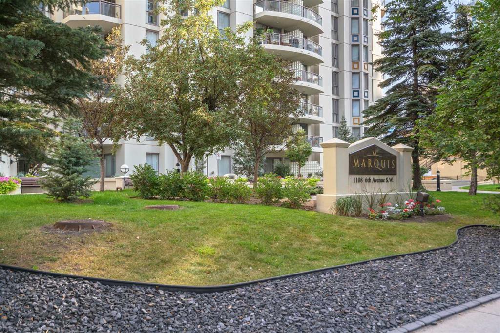 Ideally located in the quiet west end of downtown, this renovated 2-bedroom, 2-bathroom unit in The Marquis offers nearly 1,000 sq ft of bright, open-concept living space. Just steps from the Bow River pathways and only 2 minutes to the C-Train (within the free fare zone). Features include granite countertops, new stainless steel appliances, vinyl plank flooring, a gas fireplace, and a south-facing, tree-lined balcony. The oversized primary bedroom includes a full ensuite and direct balcony access. The second bedroom is situated near the second full bathroom, ideal for guests or roommates. Additional conveniences include quick stair access (bypassing elevator wait times) and close proximity to the titled underground parking stall. Building amenities include a fitness center, yoga studio, party room, landscaped courtyard, secure bike storage, and visitor parking. Pet-friendly building (with board approval; under 20 lbs). Walkable location close to Kensington, river trails, cafes, restaurants, and downtown amenities.