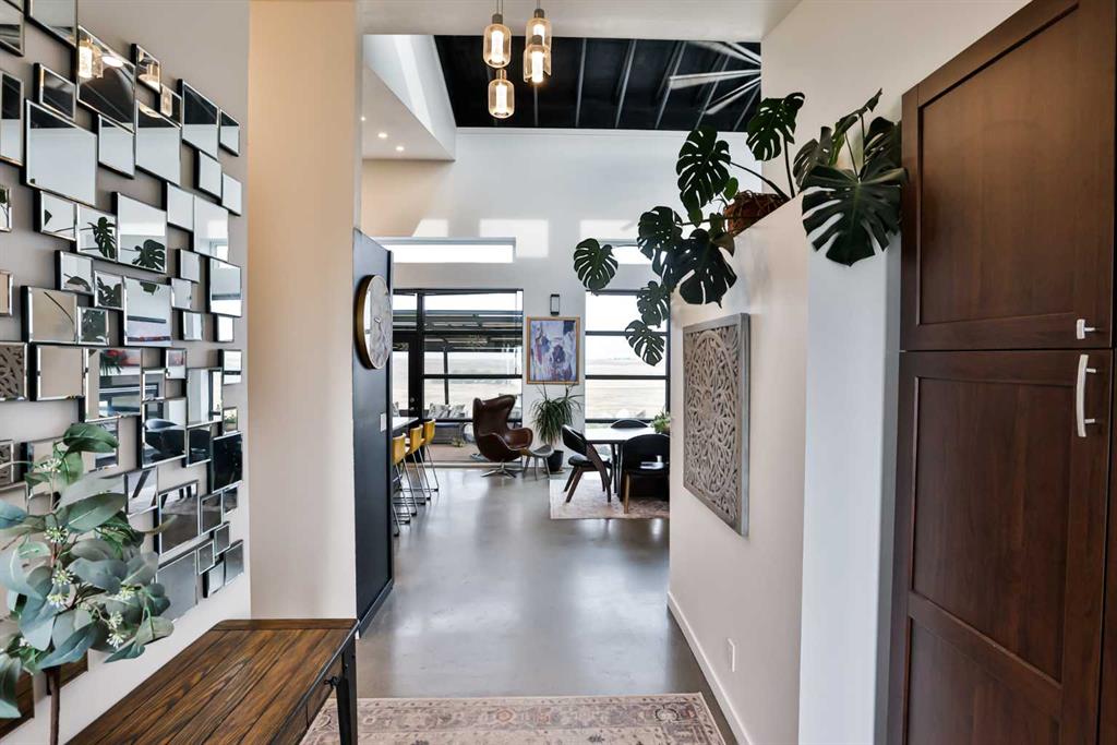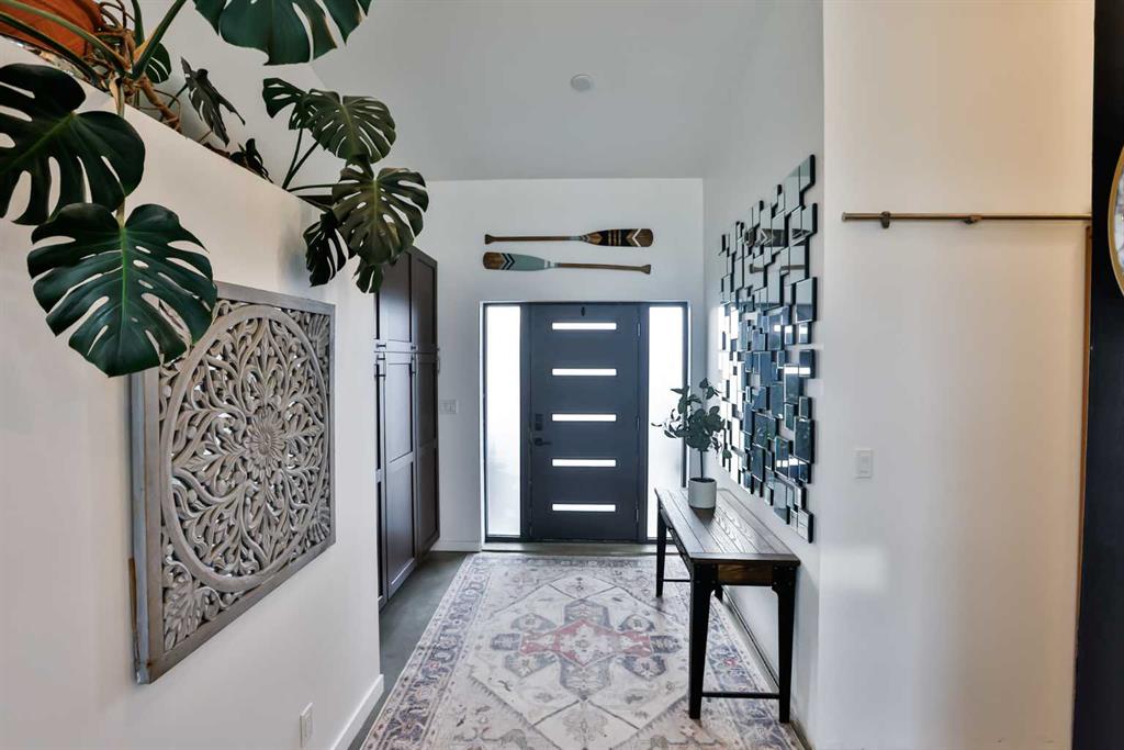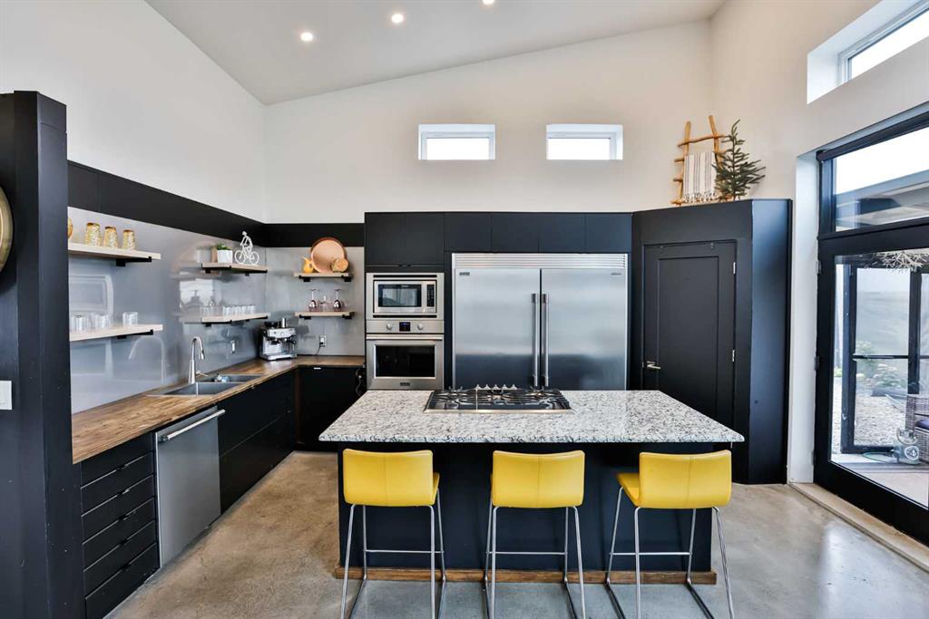 Built in 2018, the slightly over 1,700 ft² bungalow marries contemporary style with top-tier construction. The home features durable ICF block walls paired with Lux triple pane windows and spray foam insulation, ensuring energy efficiency and year-round comfort. Enjoy the luxury of in-floor heating and a state-of-the-art HRV system that circulates fresh air throughout the residence. An on-demand hot water system and 200 amp service. Step inside to discover a modern aesthetic defined by concrete floors, a shed roof vault design with additional transom windows, and a striking three-sided fireplace that creates a captivating focal point in the living area. The expansive kitchen is designed for the modern chef, boasting a built-in fridge & freezer, wall oven & microwave, five-burner gas cooktop, butcher block countertops, granite counters, stainless steel backsplash, and a convenient corner pantry—perfect for gourmet gatherings and everyday meal prep.
