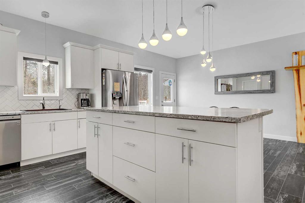 Built in 2019 by Deeproots House, this custom home is designed for those who value craftsmanship and honest living. Set on 2.14 private, fully fenced acres surrounded by trees, it offers privacy and space to stretch out! With crown land across the road and only a kilometre of gravel before pavement, you have a private slice of heaven without giving up easy access to town. Step inside and you’ll notice right away the care that went into every detail. The entry has tall ceilings and custom woodwork, setting the tone for what’s to come. The kitchen is the kind of space people dream about, with white cabinetry, stone countertops, stainless steel appliances, a large island with an eat-up bar, and the bonus of a walk-in pantry. It’s spacious enough for multiple cooks, with plenty of counter space for prep, all while kids or guests can sit at the island. Right beside it, the dining area is filled with natural light and opens onto the deck! The living room ties it all together, with custom wood detailing that adds craftsmanship you don’t often see. The spacious primary bedroom comes with a beautiful ensuite, complete with dual vanities, a soaker tub, and a shower. This retreat also boasts a walk-in closet. Another bedroom and full bathroom complete the main floor. Downstairs has large windows that keep it bright and comfortable, making it a place you’ll actually want to spend time in. The family room is spacious and works perfectly for movie nights, a play area, or a home office. Here you’ll also find two generous bedrooms, a full bathroom, and the laundry. Throughout the entire home, triple-pane windows and in-floor heating showcase the quality that set this property apart. The off-grid systems are already in place with 17 solar panels, 24 AGM batteries, and a backup commercial generator. A wood boiler and propane system keep the home and garage warm through in-floor heat, while propane also runs the stove, dryer, and a dedicated line for the barbecue. The 1000-gallon propane tank is rented for $195 per year and costs about $1200 to fill. Instead of juggling service fees and unpredictable utility costs, you’ll be heating, cooking, and living with systems you control yourself. Around the property, the outbuildings add both function and enjoyment. A 26x28 heated garage with in-floor heat keeps vehicles and toys safe through the winter. There’s a powered 16x16 cabin, a greenhouse, a root cellar, and a 16x16 sauna with a wood-fired Huum stove (2023) will have you looking forward to winter. A pole building, sheds, and a battery shed complete the set-up, making this acreage practical in every season. This is more than a home. It’s a place where you can raise a family, grow and store food from your own land, and enjoy spaces built with care and intention. With trees surrounding you, crown land across the road, and every building and system already in place, it’s an acreage where you can live life on your own terms. Call your REALTOR® today to book a showing.