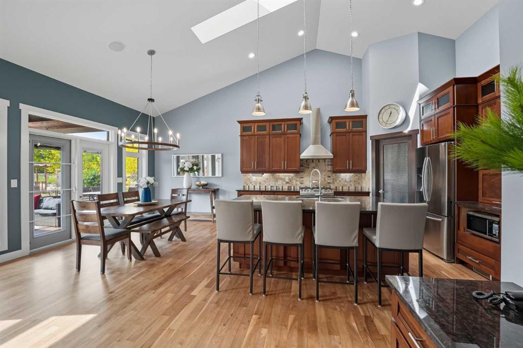 A fully developed bungalow on 1.47 acres in Balmoral Heights! The curb appeal is accented by the paved circular driveway, stucco, stone accents and covered front porch. The front entryway greets you to the open style floor plan that features vaulted ceilings and hardwood floors that have been refinished with a trendy matte finish. Maple kitchen cabinets are accented by full tile backsplash, crown moldings, granite countertops, glass front upper cabinets, a large island eating bar, skylights, a gas stove and a walkthrough pantry. The eating area has patio doors out to the backyard. You\'ll enjoy relaxing in the living room next to the gas fireplace that has floor to ceiling stone surround. The tiled back entryway has a laundry area with a sink and quartz countertops. There are 3 bedrooms on the main floor. The king sized primary bedroom has hardwood floors, double windows overlooking the backyard, a walk in closet with custom built ins and a 5 piece ensuite with heated tile floors, double sinks, quartz, a freestanding air jet tub & a custom glass/tile shower. The main floor also boasts a powder room off the back entryway and a 4 piece bathroom with quartz. Follow the stairs with wrought iron railings and stair lights down to the basement into the large family games area with a massive wet bar that features granite countertops, a dishwasher, wine fridge and ice maker, pool table (included) and family room with a gas fireplace and a door that accesses the side yard & a two tiered theatre room, all with leather flooring. There is a 4th bedroom, a 4 piece bathroom, a gym/office with durable gym flooring. Step outside onto the composite deck that has a vaulted roof cover (two gas hookups) that leads to a concrete patio with a hot tub area overlooking the retaining wall and into the yard. There is a shed, chicken coop and power/water to the back of the lot for a future shop. The home has a high efficient furnace, a boiler system, central vac, sonos for sound throughout, a/c, reverse osmosis, heated tile throughout (except in the back entryway, a tandem triple car garage (warmed by underfloor heat). The perfect country residential location within minutes to Red Deer. Upgrades since 2016: paved front driveway, stucco repainted, landscaping, retaining wall in backyard, garden shed, reverse osmosis, refinished hardwood with a matte finish and concrete around the home.
