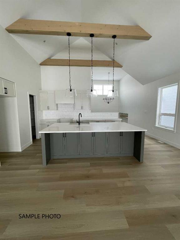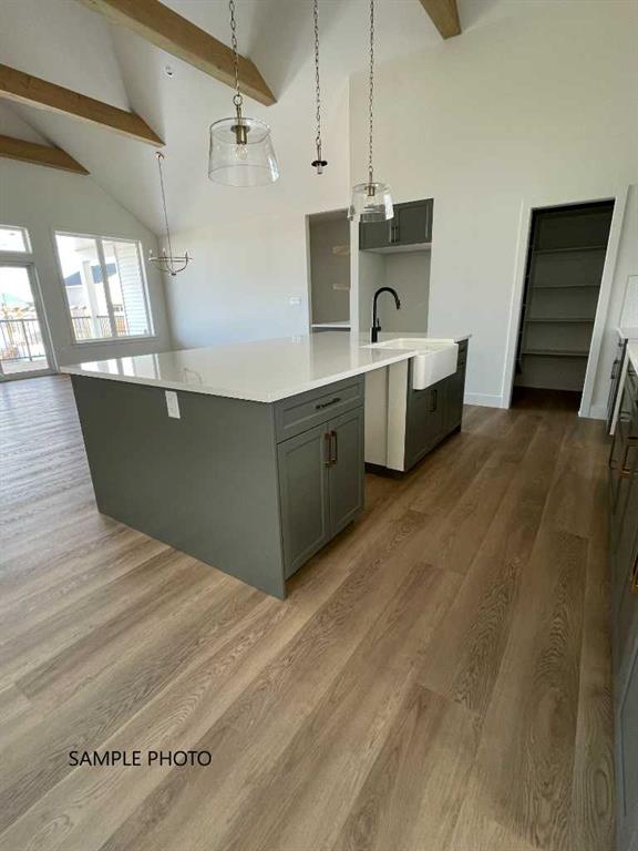 *High Mark Homes Job 408* The Hendrix II, a modified bi-level, is a true showstopper in Whispering Ridge with a green alley on the north side! Step inside to discover soaring ceilings and an open entryway that leads you to the main floor which features a gourmet kitchen with sleek quartz countertops and spacious living room. The luxurious main floor primary bedroom is complete with a spa-like ensuite and conveniently located laundry. Upstairs, you\'ll find two additional bedrooms and a stylish main bath, for a total of 3 beds and 2.5 baths. The 9-16ft ceilings throughout create a bright and airy atmosphere, with plenty of natural light flooding in through the large east facing covered deck and an oversize triple garage (with extended depth) measuring 40\'6\" x 28\'8\". Estimated completion date early January 2026. *Seller is a licensed Realtor in province of Alberta