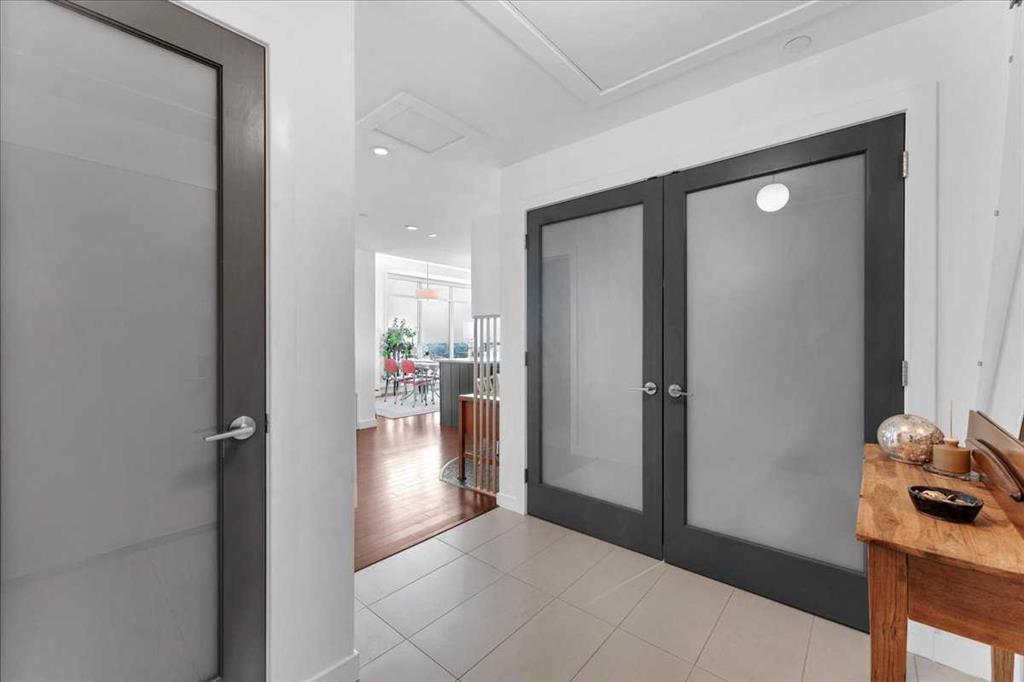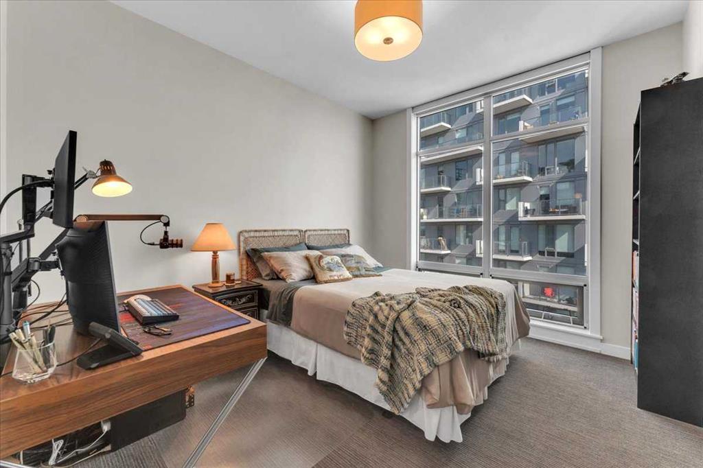 Your primary retreat is a true sanctuary, featuring a full length window with automatic blinds, a spacious walk-in closet with built-ins, and a spa-inspired ensuite complete with double sinks, a private water closet, and a luxurious 3-sided glass shower with rain head. A second bedroom and full bathroom offer flexibility for guests, a home office, or both.