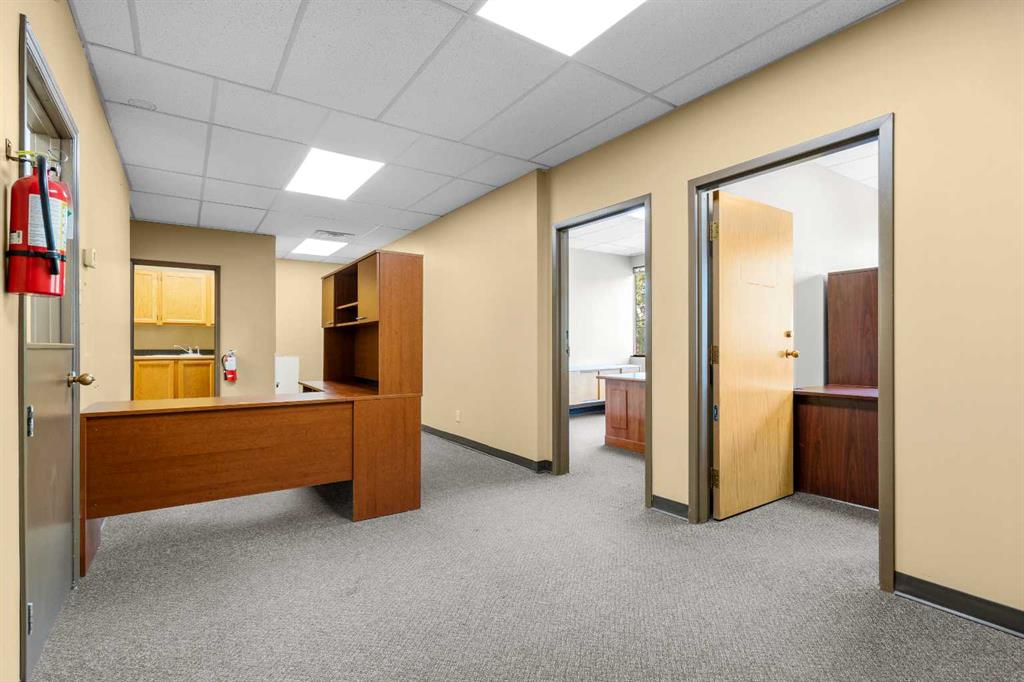 Looking for great office space in downtown Okotoks then look no further. The front of the building is on Elizabeth street and there is a parking lot belonging to the building too - great for your customers. The building has an elevator so no concerns about access to the 2nd floor. There are shared washrooms just steps away from the space. The space includes a reception area, a meeting room, kichenette area, a large central space and 4 offices. The space is a total of 1297 sq ft with rent being $15 per sq ft + op costs of $13.38 per sq ft (heat, water and electric are included). This is a great space with lots of natural light. A great opportunity in downtown Okotoks! See 3D tour.