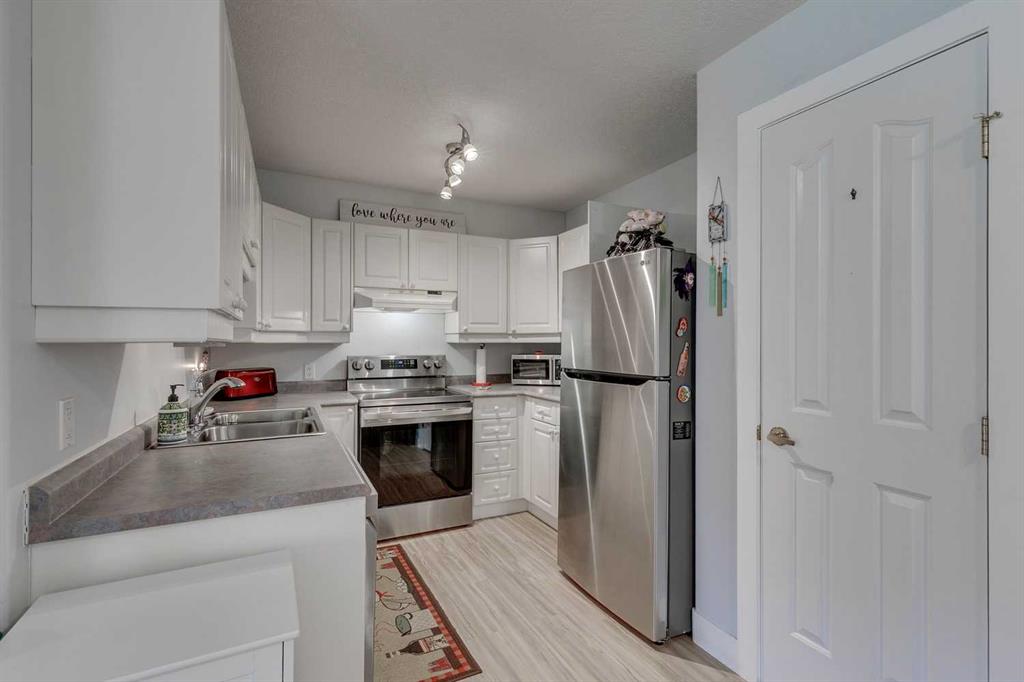 Welcome to Dana Village, where you can enjoy a \'turn key\' lifestyle. Quick possession works on this preferred MAIN floor 55+ unit. Signal Hill offers easy access for commuting, LRT, parks and pathways and numerous amenities & services in this well established central community. Heated underground parking stall, carwash, workshop, weekly rides for shopping trips, pot lucks, social activities & exercising/recreation events. Gorgeous central dining hall for residents to enjoy. Covered balcony (west facing) steps out to the beautifully landscaped courtyard and grounds. Patio has a BBQ gas line, room for deck furniture, gardening and ample space for you to read, relax and repeat. Balcony storage room as well as secured caged storage in front of parking stall located near elevator. Unit has been lovingly maintained and updated: newer furnace, Central A/C, efficient Stainless Steel appliances, modern luxury vinyl plank flooring, high end kitchen faucet & bath/light fixtures. Versatile floor plan (>820 sq. ft.) features 2 LARGE Bedrooms, 3 piece Bathroom, In-suite laundry, full pantry and utility area. Decorated in a modern neutral colour palette. Single floor living, accessibility features to help with mobility ease. Another perk of main floor living is that you can have a dog or cat (board approval) & direct outside access from your balcony. Complex is well managed and ready for those seeking their new chapter in a dynamic, multi faceted setting. Don\'t miss this opportunity, call and view today!