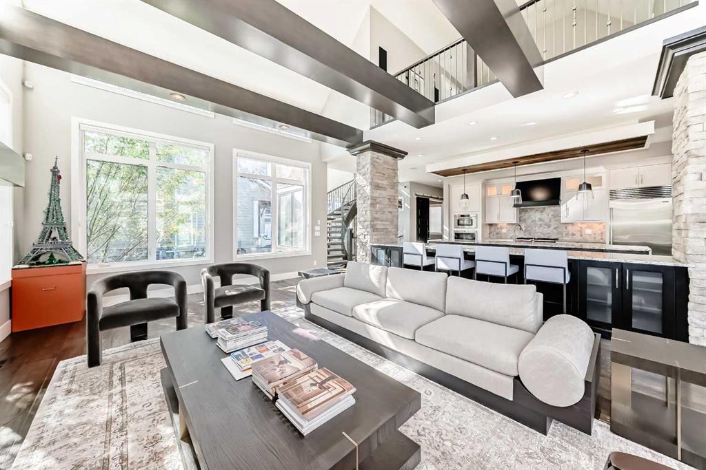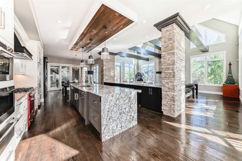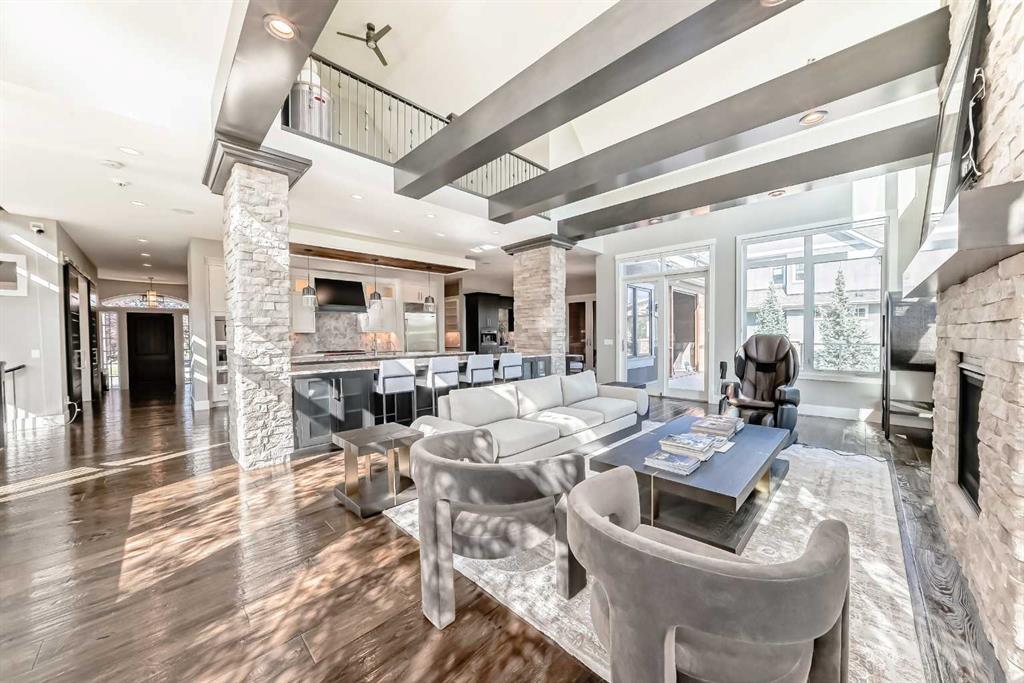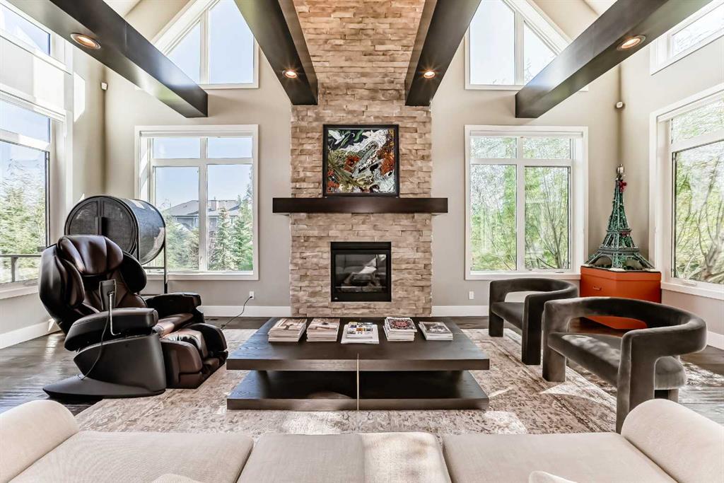 FORMER ASTORIA SHOWHOME – NATIONAL FINALIST FOR HOME OF THE YEAR! Welcome to 24 Rockwater Way in Watermark, a masterpiece by Astoria Custom Homes.Recognized as a Canadian National Finalist for Housing Excellence and a SAM Awards Finalist for Best New Home, this residence was ranked among the TOP FIVE homes in the nation.The home opens with a dramatic foyer, where wide-plank hardwood, 11-foot ceilings, and a curved open-rise staircase set the tone. Sunlight floods the space, illuminating stone-clad columns, wood-beamed ceilings, and hand-painted details. The chef-inspired kitchen featuring dual granite waterfall islands, a La Cornue range, Sub-Zero refrigeration, and a Wolf built-in coffee system. A butler’s pantry with beverage center streamlines entertaining, while custom cabinetry, subtle lighting, and professional-grade finishes complete the space. French doors open to a covered deck with a stone-clad fireplace, extending the gathering space for year-round enjoyment. In the great room, a soaring stone fireplace anchors the design, while exposed beams draw the eye upward.Custom lighting and built-in speakers enhance the ambiance, highlighting both architecture and comfort. A private home office with barn doors and tailored built-ins offers function with style, while the bright dining nook—framed by designer finishes—creates an inviting space for everyday living. Upstairs, the primary suite is a private sanctuary with vaulted ceilings, a fireplace, and a hidden walk-in closet. The spa-inspired ensuite offers heated tile floors, a glass shower, private water closet, and a soaking tub designed for pure serenity. A second guest suite with ensuite, two additional bedrooms with a shared full bath, and a loft overlooking the great room provide space for family and guests. A full laundry room with custom cabinetry adds convenience.The walkout basement is designed for both relaxation and entertaining.Highlights include a rec/theatre room with stone-clad built-ins, wet bar, and wine display; a fifth bedroom with full bath for guests; and walkout access to a covered patio prepped for a hot tub with gas fire bowl rough-in. The triple-attached heated garage features epoxy floors, slab heating, and custom storage—combining function with refined elegance.Over $40,000 in thoughtful upgrades make this home move-in ready, including a 2024 Bosch dishwasher, radon mitigation system, landscaping with new trees, mulch, and driveway sealing, patio improvements with a new staircase and screened patio, and custom window blinds, among other refinements. Watermark at Bearspaw delivers tranquility, privacy, and prestige. Architectural controls preserve timeless beauty, and the absence of commercial development ensures peace and exclusivity. Residents enjoy a central plaza with gazebo and outdoor fire pit, soccer field, reflection pond, BBQ facilities, landscaped parks, NBA-sized sports court and 5 km of paved trails. Book your private showing today and Welcome Home!