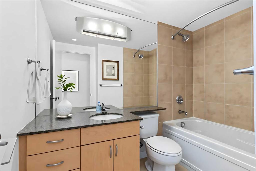 Welcome to Unit 607 – 8880 Horton Road SW, a spacious and sun-filled 2-bedroom, 2-bathroom Dover model in the sought-after London at Heritage Station high-rise community. Offering 969 sqft of well-designed living space (iGuide measured), this move-in ready, vacant unit is perfect for both first-time home buyers and savvy investors looking for unmatched convenience and rental potential in Calgary’s southwest. The open-concept floor plan features large windows in every room, flooding the space with natural light and offering a bright, airy feel throughout. The kitchen is both functional and stylish, complete with granite countertops, full-height tile backsplash, dark maple cabinetry, and a raised eating bar – ideal for everyday meals or casual entertaining. Step out onto your private balcony equipped with a gas line for BBQs and enjoy quiet evenings overlooking the vibrant urban surroundings.