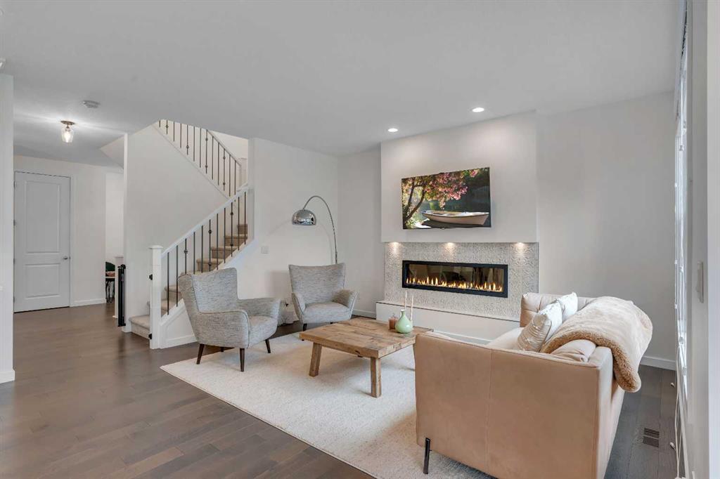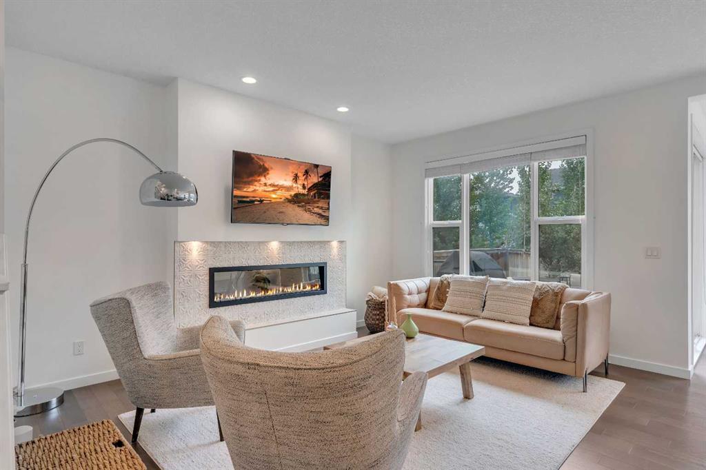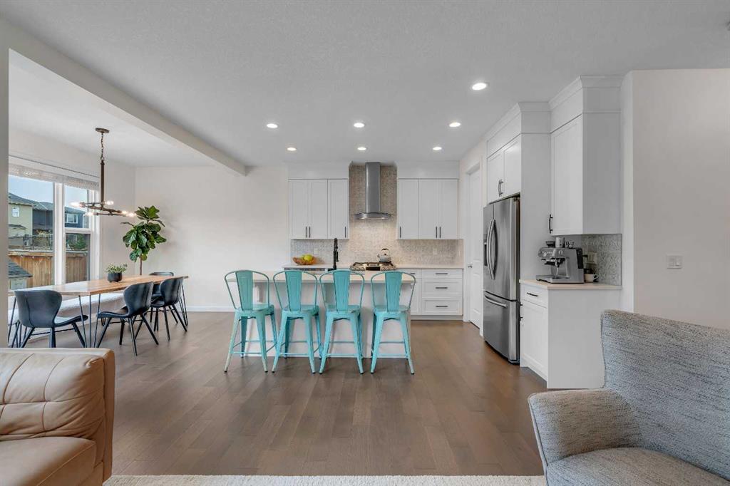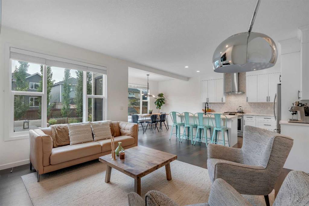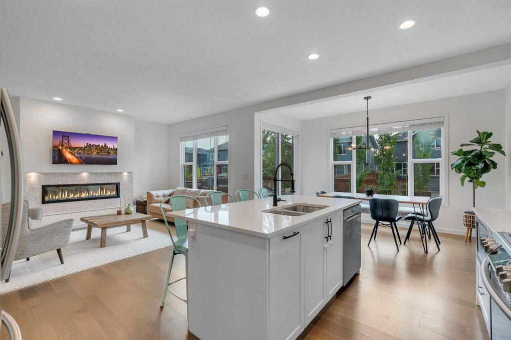 Located in the heart of Riverstone in Cranston, this home offers almost 2,300 sq ft of comfortable living space with 3 bedrooms and 2.5 bathrooms. It’s a home designed for everyday life, with thoughtful upgrades and a layout that works well for both family time and entertaining. Step through the front door and into the main level where warm engineered hardwood floors and upgraded LED lighting set the tone. The kitchen is the hub of the home, featuring a central island, walk-through pantry, quartz counters, a gas stove, garburator, and a natural gas hook-up for outdoor grilling. Just off the kitchen, the dining area looks onto a sunny south-facing backyard. The living room sits adjacent, with a tiled electric fireplace as the focal point for relaxing or gathering with friends and family. Near the garage entry, a practical mudroom with a built-in walk-in closet keeps everyday gear tucked away. Upstairs, the flow continues with a bright bonus room that works well for movie nights, playtime, or even a home office. The primary bedroom is oversized, with a 5-piece ensuite that includes dual sinks, quartz counters, a soaker tub, and a separate shower, plus a large walk-in closet. Two more good-sized bedrooms, a full bathroom, and a convenient laundry room with tile flooring complete the upper level. Other features include central air conditioning, a water softener, and a double attached garage with a 240v hook-up for electric charging. The basement is undeveloped, ready for your ideas—whether you’re planning a gym, a rec room, an extra bedroom, or all of the above. Outside enjoy the meticulous yard with mature landscaping, including an apple tree, a cherry tree, and a dedicated dog run. Outdoor show home lighting adds an extra touch, making evenings in the yard inviting. Living in Riverstone means easy access to the Bow River Valley and Fish Creek Park, perfect for biking, walking, or just enjoying the outdoors. The Cranston Residents Association offers exclusive access to the Cranston Club with its water park, tennis courts, skating rinks, and picnic spaces. Schools, shopping, and everyday services are nearby, making this a well-rounded choice for families. This is a home that balances comfort, function, and community in one of Calgary’s best-loved neighbourhoods.