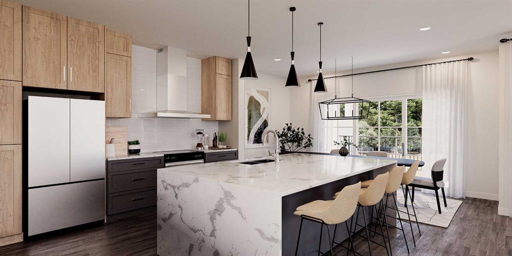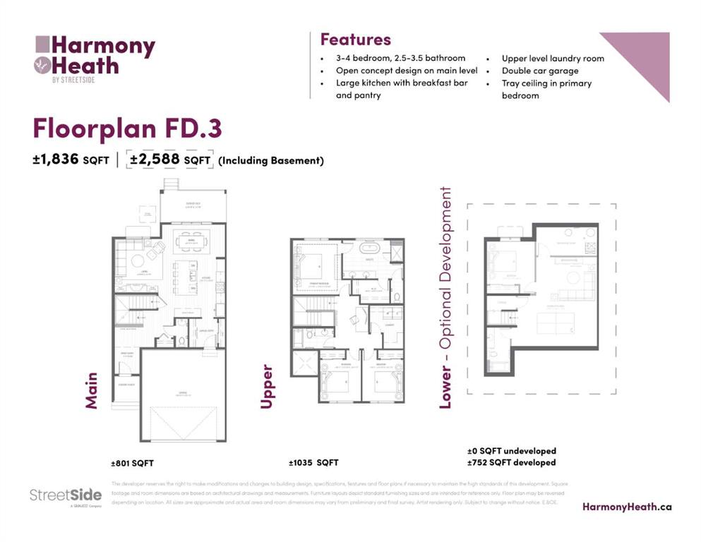 Welcome to 1140 in Harmony Heath—the ideal home for your family to grow, thrive, and create lifelong memories. Designed with every family member in mind, this home offers a blend of comfort, style, and convenience that’s hard to beat. This interior home includes a fully developed basement, a double attached garage, and a walk-through mudroom featuring handy pantry shelving and lockers. The expansive 33\' driveway ensures plenty of room for your vehicles. Step outside to a 16’x8’ covered deck and a large, sodded backyard enclosed by a privacy fence, seamlessly blending into developer-installed wrought iron fencing along the greenspace. Inside, the kitchen is a chef’s dream with full-height dual-tone cabinets in dark grey and an oak finish, complete with Samsung appliances and a gas line. The adjacent, spacious living room is perfect for family gatherings. The basement, with 9\' ceilings, has plenty of space for a TV lounge and room for air hockey or a ping pong table. The upper-level primary suite is your peaceful sanctuary with beautiful green space views, a freestanding bathtub, and a luxurious 10mm glass shower. Laundry days are more manageable with an upgraded laundry package: quartz counter, + upper cabinet with hanging rod above the side-by-side machines to tackle those everyday chores. Living in Harmony Heath means benefiting from top-rated schools with convenient bus pick-up and a community filled with activities: an adventure park, skate park, climbing wall, and over 27 km of paved pathways. Plus, enjoy water activities at both lakes and an off-leash dog park. Please visit us at our showhome at 1002 Harmony Parade to tour a similar home today and choose a community that supports the balance you’ve always dreamed of. Welcome to your next adventure. 45 Minutes East of Canmore and 15 Minutes west of Calgary. Possession upon completion, October 2025, May 2026. Please inquire today regarding all available promotions from the builder.