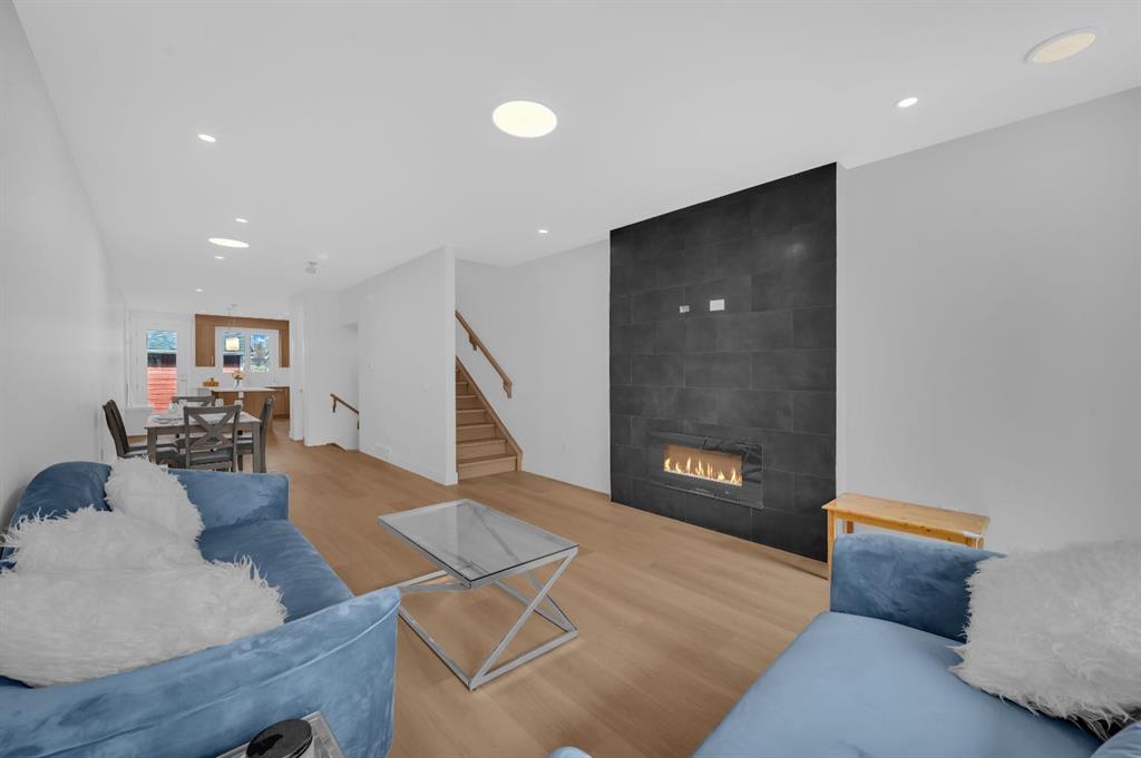 LAST UNIT! Check out the 3D tour! NO CONDO FEES | OVER 2000 SQFT OF LIVING SPACE | 5 MINS TO DOWNTOWN. Welcome to a stunning, brand-new townhome in the sought-after neighbourhood of Renfrew, featuring no condo fees. With 9 ft ceilings through-out all 3 levels, the main level boasts an open-concept design, seamlessly integrating the living room with an electric fireplace, a dining area, a half bath and a modern kitchen, creating a perfect space for entertaining and family gatherings. Upstairs, you\'ll find 2 spacious bedrooms with en-suite bathrooms as well as walk-in closets and a convenient laundry room. The fully finished basement extends your living space with an additional bedroom, full bathroom, recreational room, and wet bar. A single car detached garage and a fully fenced backyard complete this exceptional home, offering both privacy and convenience in a prime location. With contemporary design and high-quality finishes throughout, this home combines comfort, style, and affordability in a prime location only few minutes from Downtown, highway 1 and Deerfoot trail access.