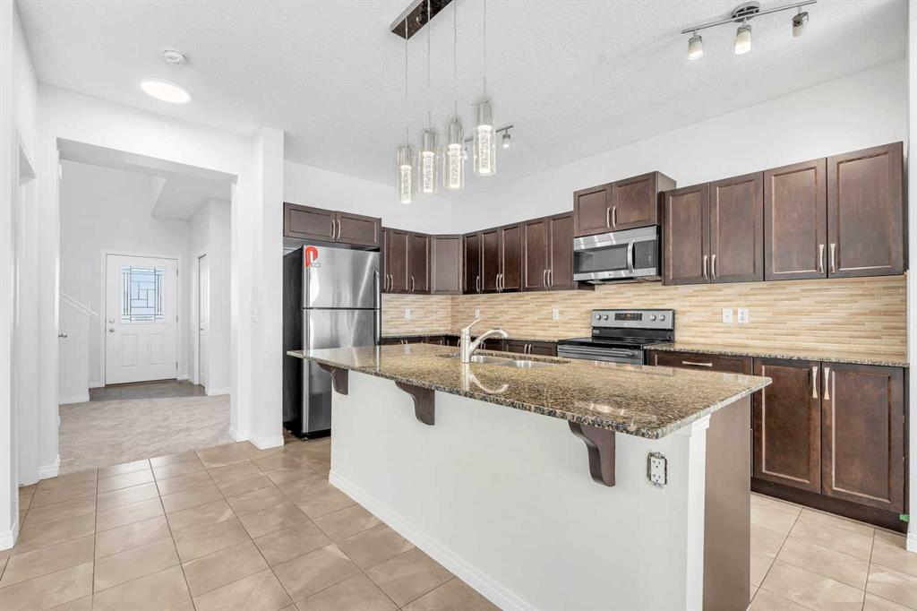 LEGAL SUITE | NEW PAINT & CARPET | POURED PARKING PAD | DETACHED HOME | This well-maintained home in Skyview Ranch delivers modern updates, functional design and income potential with its fully legalized basement suite with its own furnace and heat control. Vacant and ready for a quick possession. An impressive open-to-above foyer greets guests with natural light and a sense of grandeur, setting the tone for the home. A neutral colour palette enhances the open layout, where a front den offers an airy home office or flex room. The kitchen inspires culinary creativity with stone countertops, stainless steel appliances and a large centre island providing abundant prep space and casual seating. Clear sightlines connect to the dining area, making gatherings effortless, while the adjacent living room features an oversized window framing backyard views. A mudroom at the rear entry and a convenient powder room add everyday practicality. Upstairs, laundry is thoughtfully located to save hauling loads up and down the stairs. The primary retreat includes a walk-in closet and private 4 pc ensuite for daily comfort. 2 additional bedrooms share a 4 pc bathroom, ensuring space for family or guests. The legal basement suite offers a separate entrance, high ceilings, and a full kitchen with stainless steel appliances plus generous cabinetry. An adjacent living room, spacious bedroom, 4 pc bathroom, and separate laundry ensure privacy and independence from the upper level, making it ideal for extended family or generating rental income. Outside, a charming front porch welcomes morning coffees, while the west-facing backyard is perfect for kids and to play. A concrete parking pad supports off-street parking and the option to add a future garage. NEW SHINGLE ROOF, GUTTERS & DOWNSPOUTS. Located in Skyview Ranch, within walking distance to Prairie Sky School, parks and transit. Surrounded by green spaces and community pathways, residents also enjoy quick access to shopping, dining, Deerfoot Trail and Stoney Trail for convenient citywide connection. This is a turnkey opportunity combining fresh updates, thoughtful design and a revenue-generating suite in a family-friendly community!
