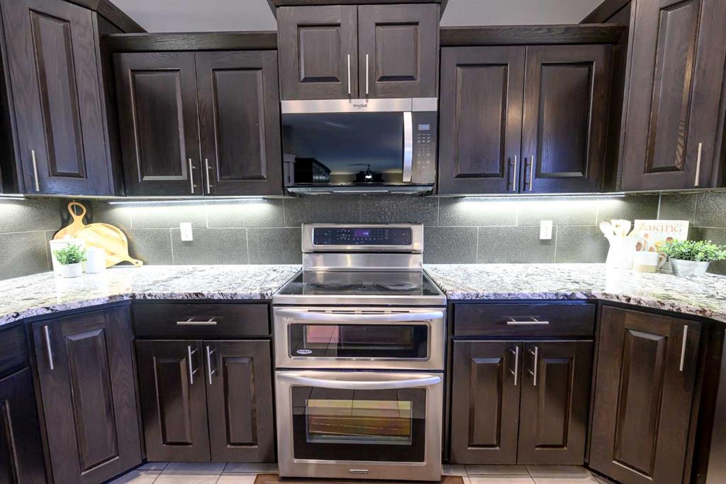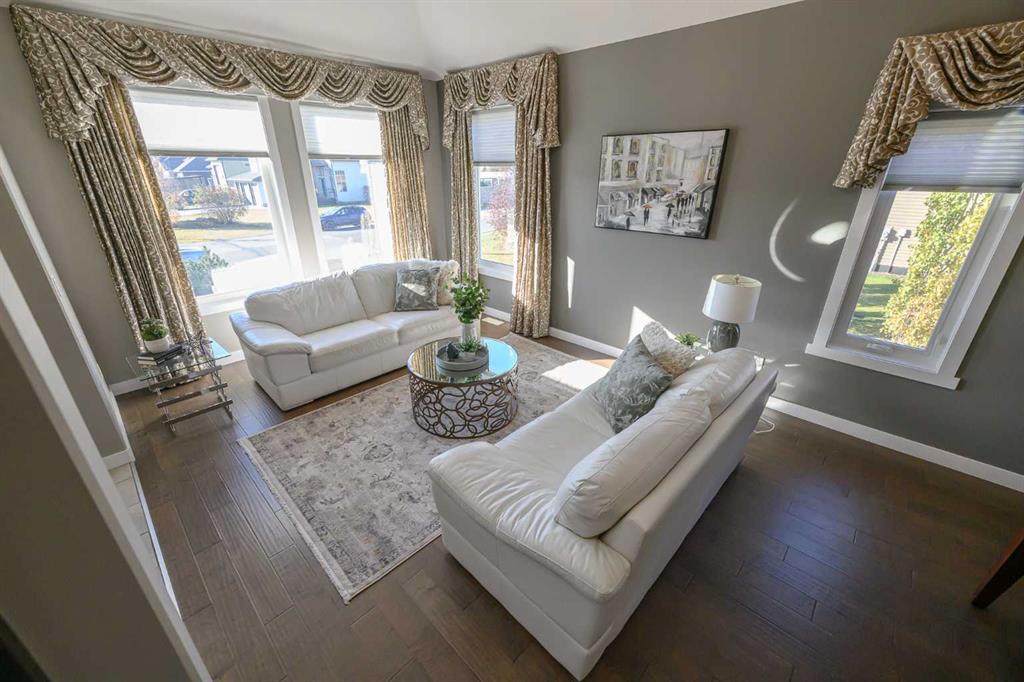 Stunning upscale two-storey home offering well over 3,000 sq. ft. of beautifully appointed living space. Fully developed and designed for modern family living and entertaining. There are 5 bedrooms plus a main-floor office and formal dining room. There is a formal living room and a family room. Eat-in kitchen with abundant cabinetry, a buffet/server area ideal for entertaining, upgraded granite countertops, and stainless steel appliances. The Kitchen walks out to a BBQ deck overlooking a large, private yard. Massive primary suite with two walk-in closets and a luxurious 5-piece ensuite featuring a glass walk-in shower and freestanding soaker tub, and a gas fireplace. Main-floor office and convenient laundry room. Elegant hardwood and tile throughout the main living areas. Fully finished basement with two generous additional rooms, a full bathroom, a large open family room, and extensive storage. Triple heated garage, central A/C, Tesla charging port, custom blinds, and new lighting fixtures among premium upgrades. Location Nestled in desirable Westlake, this home enjoys proximity to schools, scenic water features, paved trails, and larger lots that deliver privacy and a neighborhood feel. This exceptional property blends refined finishes with functional spaces for every stage of life and is perfect for families who value space, quality, and location. Book your showing today!!!