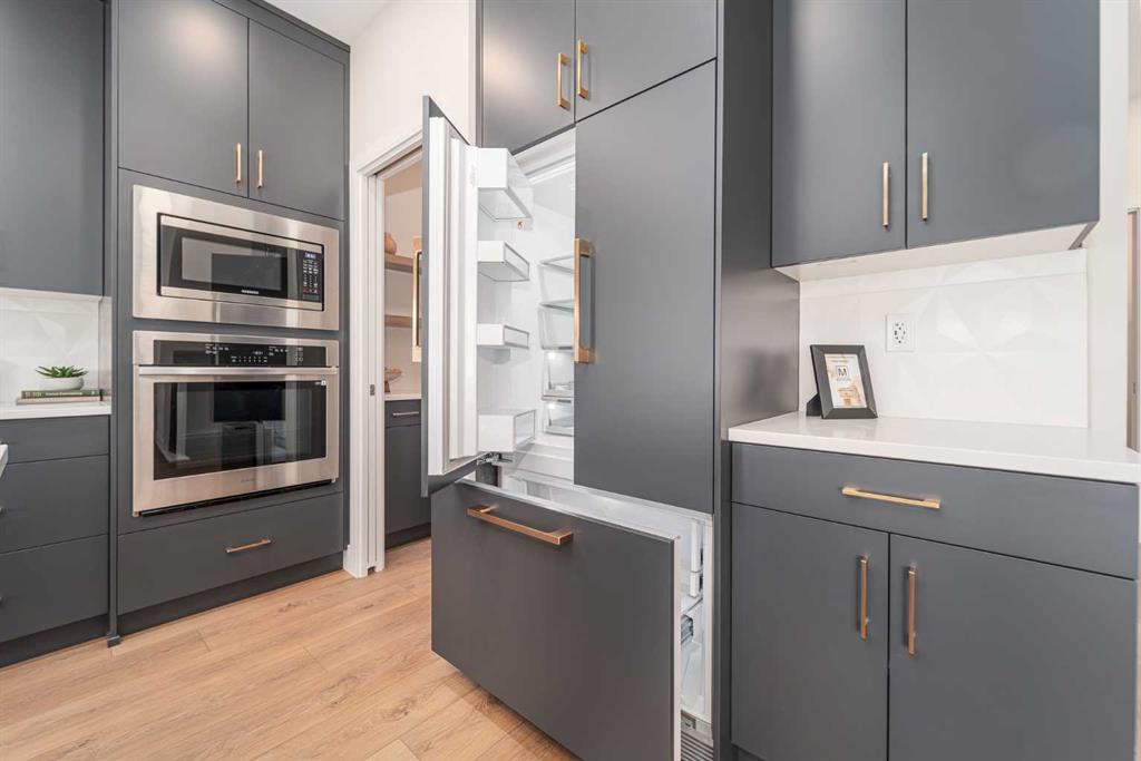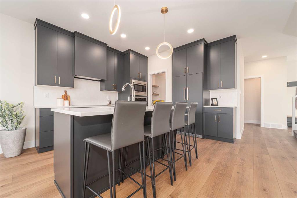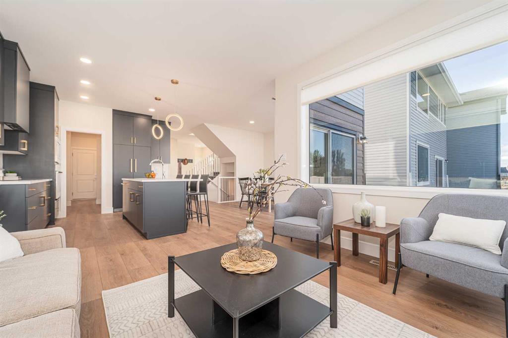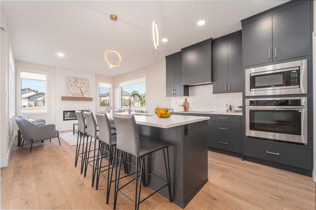 Welcome to the \"Comrie\" by Stranville Living, located in the desirable Lethbridge community of Southbrook. This new home is situated merely a few hundred meters from Dr. Robert Plaxton K-5 public elementary school, whose property includes a new playground, soccer pitch, baseball diamond, and a basketball court. Southbrook is conveniently located minutes away from big box shopping, various restaurants, and the VisitLethbridge.com arena and event center. This award-winning two storey home is well laid out and boasts a main floor rivaled by few homes of this size. It incudes a beautifully appointed kitchen with Adora Cabinets with gold accents extended to the ceiling, fully tiled backsplash, and quartz countertops for both the base cabinets and island. Stranville Living\'s top tier appliance package includes a seamlessly integrated paneled Fisher & Paykel fridge, paneled dishwasher, induction cooktop, built-in hood fan, and a stainless steel wall oven and microwave combo unit. There is a set of base cabinets with matching quartz countertops and floating wood shelving in the butler\'s pantry, which walks through to the mudroom and garage entry. The centerpiece of the living room is a linear fireplace set into a fully tiled insert with wood mantle surrounded by a set of large windows that face west and provide ample natural light. Adjacent to the dining room is a large sliding glass door that exits onto your future deck and rear yard that backs a serene green strip with walking paths. The upper level includes a great primary bedroom with a huge walk-in closet and ensuite, two more bedrooms, a main bath, as well as a media room and large laundry room. This home also includes Hunter Douglas window coverings and front yard landscaping with sod, a tree, shrubs, and underground sprinklers. High efficient mechanical equipment, Low E windows, and spray foam in the rim joists help keep your heating ad cooling costs in check. Very cool house on a terrific street in south Lethbridge! There\'s nothing like NEW!