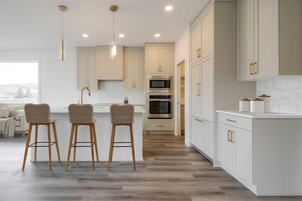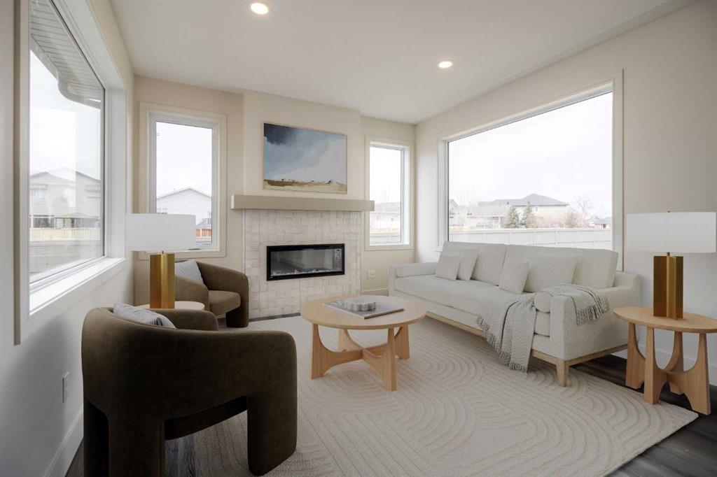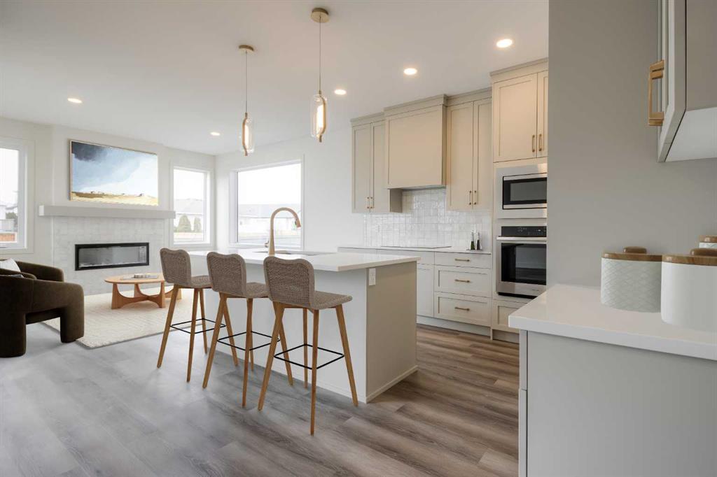 Welcome to the \"Comrie\" by Stranville Living, located in the desirable Lethbridge community of Southbrook. This new home is situated merely a few hundred meters from Dr. Robert Plaxton K-5 public elementary school, whose property includes a new playground, soccer pitch, baseball diamond, and a basketball court. Southbrook is conveniently located minutes away from big box shopping, various restaurants, and the VisitLethbridge.com arena and event center. This award-winning two storey home is well laid out and boasts a main floor rivaled by few homes of this size. It incudes a beautifully appointed kitchen with Adora Cabinets with gold accents extended to the ceiling, fully tiled backsplash, and quartz countertops for both the base cabinets and island. Stranville Living\'s top tier appliance package includes a seamlessly integrated paneled Fisher & Paykel fridge, paneled dishwasher, induction cooktop, built-in hood fan, and a stainless steel wall oven and microwave combo unit. There is a set of base cabinets with matching quartz countertops and floating MDF shelving in the butler\'s pantry, which walks through to the mudroom and garage entry. The centerpiece of the living room is a linear fireplace set into a tiled build out with a painted MDF mantle surrounded by a set of large windows that face west and provide ample natural light. Adjacent to the dining room is a large sliding glass door that exits onto your future deck and rear yard that backs a serene green strip with walking paths. The upper level includes a great primary bedroom with a huge walk-in closet and ensuite, two more bedrooms, a main bath, as well as a media room and large laundry room. High efficient mechanical equipment, Low E windows, and spray foam in the rim joists help keep your heating ad cooling costs in check. Very cool house on a terrific street in south Lethbridge! Photos contain virtual staging. There\'s nothing like NEW!