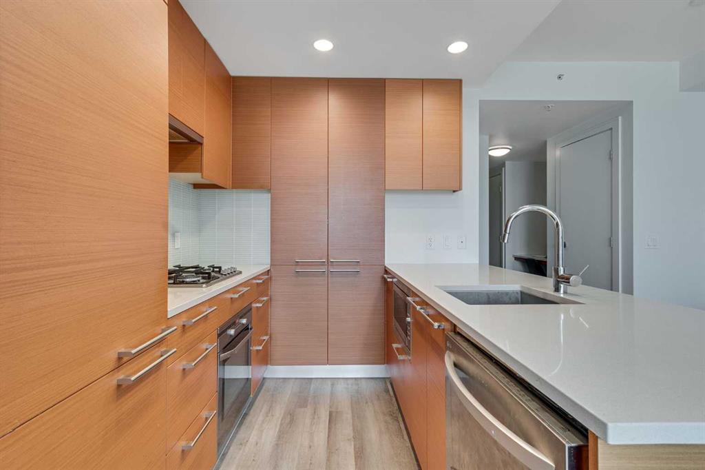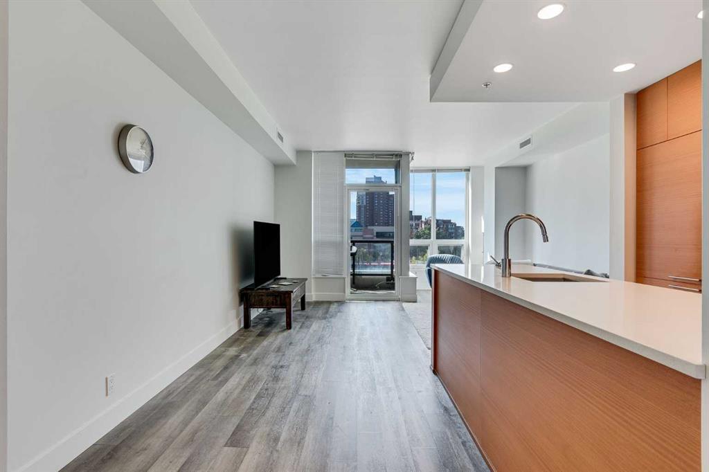 Welcome to the “Waterfront,” where modern style meets unbeatable convenience in the heart of downtown Calgary. This west-facing unit is designed for those who want to live, work, and play all within steps of their front door. Inside, the open-concept floor plan is bright and inviting, highlighted by large windows that let in plenty of natural light. A built-in desk along the wall adds a practical touch—perfect for working from home or staying organized. The kitchen features sleek quartz countertops, stainless steel appliances, and plenty of cabinet space for storage. The bedroom is a comfortable retreat, paired with a stylish 4-piece bathroom that includes a stand-up glass shower. You’ll also enjoy central A/C, in-suite stacking laundry, and a natural gas BBQ line for year-round grilling.