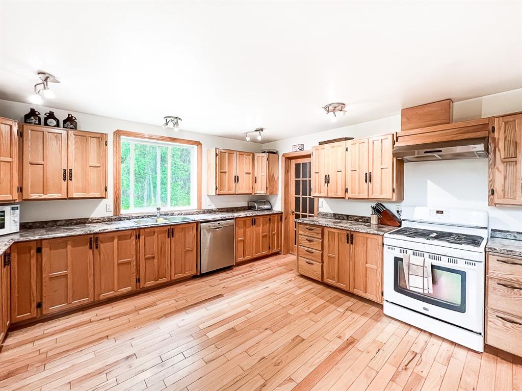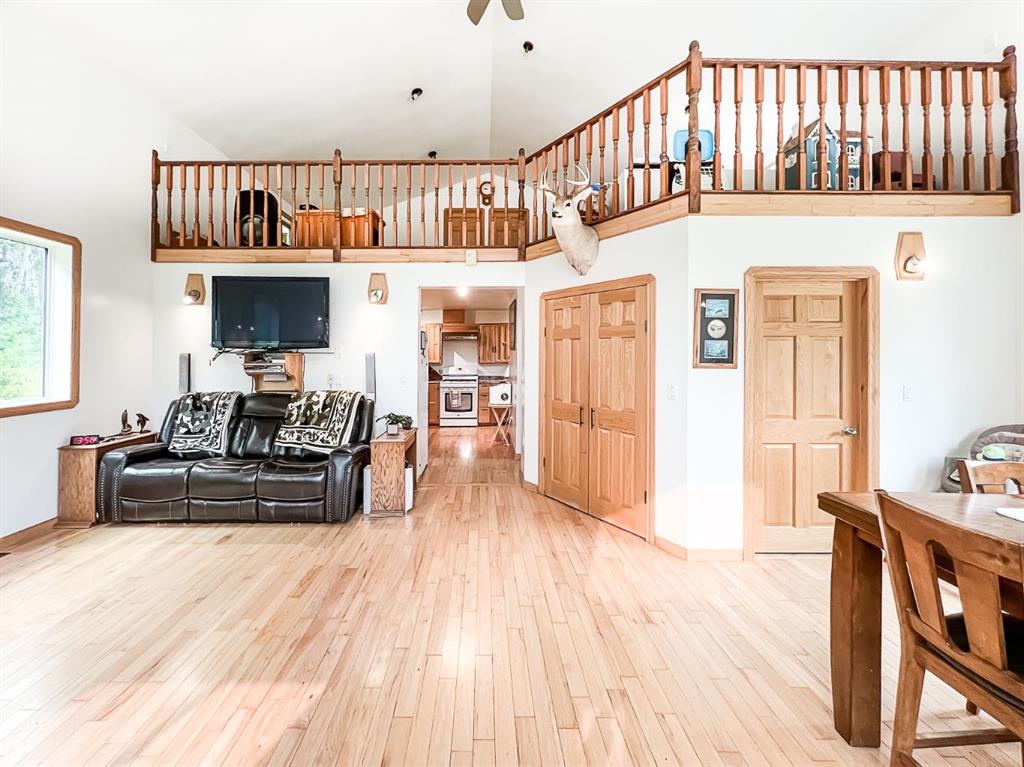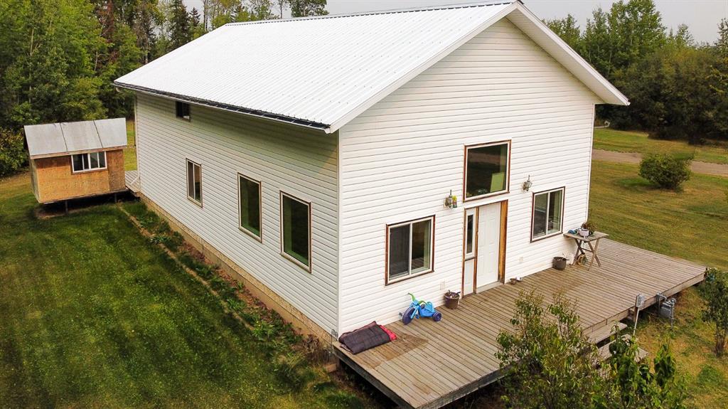 This charming property offers the perfect balance of modern comfort and tranquil country living. Set on 16.79 acres, it provides the ideal retreat with privacy, space, and convenience. Step inside and be welcomed by an abundance of natural light pouring through expansive windows, showcasing the home’s open layout and warm natural wood finishes. The bright and inviting living and dining areas create a serene atmosphere, ideal for both everyday living and entertaining. The kitchen is a chef’s dream, featuring oak cabinetry, generous counter space, a gas stove, and a spacious walk-in pantry. The primary suite is a private haven, complete with a walk-in closet, deck access, and a three-piece ensuite with a soaker tub and main-floor laundry. A four-piece guest bathroom completes the main level. Upstairs, you’ll find two additional bedrooms, a convenient two-piece bathroom, and a large loft. A versatile space perfect for a family room, home office, or hobby area. Outside, a heated double-car garage offers both parking and storage, while the surrounding landscape is adorned with mature trees and established perennials, creating your own peaceful country oasis. This property is a dream for outdoor enthusiasts, offering endless opportunities for gardening, quadding, and evenings around the firepit. Whether you’re seeking solitude, recreation, or a slower pace, this home truly has it all. Despite its serene setting, the property is just 30 minutes from Valleyview, giving you the best of both worlds, privacy and accessibility. Don’t miss your chance to call this stunning property home. Schedule your showing today and experience country living at its finest.