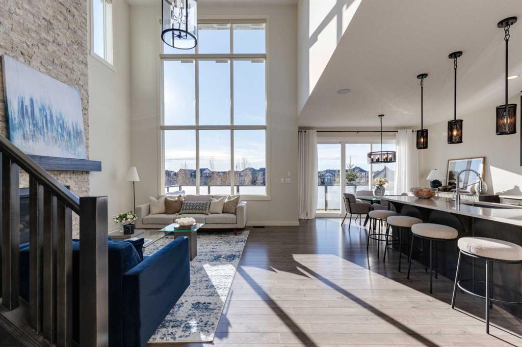 Welcome to 161 Kingsmere Cove SE, where thoughtful design meets refined living. Nestled in a quiet cul-de-sac, on an pie shaped lot just shy of 9,000 sq. ft., this pristine walkout home backs onto a tranquil pond and walking path. Offering picturesque views, privacy and a safe family-friendly connection to nature; this home captivates as you enter. Inside, a soaring 22’ ceiling frames the striking stone surround gas fireplace, filling the open concept layout with warmth and natural light through the expansive windows. The chef-inspired kitchen features granite countertops, soft-close cabinetry, a walk-through pantry, and a large island overlooking the dining area; perfect for cooking, conversation, and connection. The thoughtful layout lets you flow from inside to the balcony, which is complete with two gas lines. Here you can unwind with southwest-facing sunset views over the water. Upstairs, you\'ll find three generous bedrooms including the primary, a bright bonus room and laundry. The primary oasis offers vaulted ceilings, a spa-like 5-pc ensuite with heated floors, soaker tub, six jet shower, dual sinks, and walk-in closet. The upper laundry adds convenience with its sink, shelving, and countertop workspace. The finished walkout basement expands living to 3,168 sq. ft., ideal for a 4th bedroom, gym, or office space, and includes a 3-pc bath featuring heated floors and a large recreational room for board games or watching your favourite sports team! Outside, you\'ll love the covered patio, a show stopper for entertaining and lounging alike! This outdoor sanctuary is fully equipped with sprinklers, privacy walls, a gas line, hot tub rough-in that opens to a fully fenced yard including a dog run, a custom shed to match the home, a fully manicured lawn with mature trees, and your own private gate to the pathway for evening strolls in the fall. You can also enjoy skating with your family and neighbours on the pond in winter! This home has received over $160,000 in upgrades since 2019; including new roof, shelving & organizers in the heated triple garage with space for a lift, furnace, A/C, powered shades with solar charging, smart security, composite siding, 6-zone built-in speakers & so much more. No detail was missed in this stunning masterpiece. It blends sophistication, comfort, and lifestyle in perfect harmony! All of this comes with easy access to great schools, parks, playgrounds, shopping & the new HWY 2 intersection at 40th Avenue.