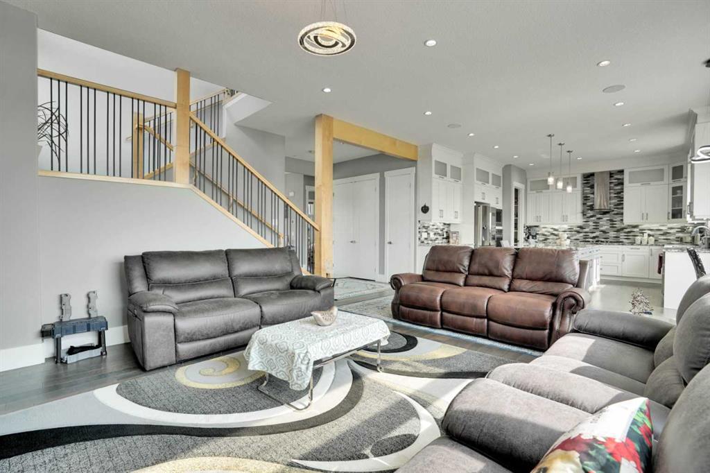This 2021 custom-built estate delivers over 5,400 sq. ft. of exceptional craftsmanship across three levels on nearly 2 acres. Designed for Luxury, functionality and family living, it presents a striking two-storey exterior with terrace Balconies, dazzling stonework and an Oversized Heated Garage that accommodates 6+ vehicles. On the main level, a grand foyer opens into bright, welcoming spaces filled with large windows for Natural Light. The inviting family room features a cozy fireplace and flows into a stunning Chef’s kitchen with Granite Counters, a massive island, abundant cabinetry and a walk-in Pantry. A spacious Office that can be converted into a seventh bedroom sits next to a full bathroom, while a convenient mudroom off the garage keeps everything organized. A beautiful Deck off the kitchen – perfect for summer BBQs and entertaining. Upstairs are four generous bedrooms—each with its own ensuite, including two with Steam Showers, walk-in closets and private Balconies. A family room, flex space and convenient laundry complete this level. The primary Ensuite is a private retreat with a lavish 5-piece ensuite (granite counters, soaker tub, steam shower) and walk-in closet. The lower level is built for versatility and entertainment with a custom Wet Bar and full Media/Theatre room with washroom. The other side houses a fully self-contained 2-bedroom Legal suite complete with kitchen, bath, laundry and private entrance, while above-grade windows flood the entire level. The basement is equipped with in-floor heating for year-round comfort.with natural light. Car enthusiasts will appreciate the Attached, Heated, and Insulated garage—approximately 35’ x 74’ with high ceilings ready for a hoist, built-ins, and space for multiple vehicles. There’s even a dedicated hot-tub room already set up for your relaxation needs. Outdoors, the expansive grounds are ready for your vision—a sports court, pool, outdoor kitchen or entertainment area. Smart-home features include Surround Sound, exterior Puck Lights, Security Cameras, and Dual high-efficiency furnaces.