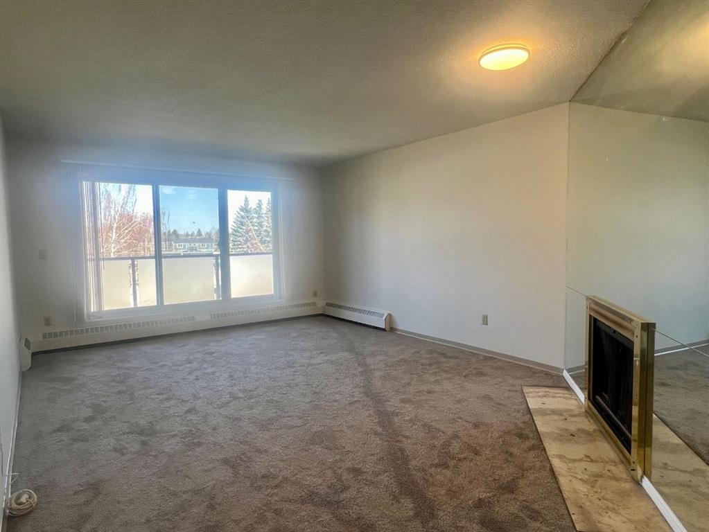 Great opportunity for first time buyers, down-sizers and Investors to own this 1- bedroom, 1-bathroom condo on the 3rd level of Landmark Gardens. Recent upgrades in the unit include fresh paint throughout, new flooring, new toilet, sink and vanity in bathroom. Bright kitchen with lots of cupboards and counter space, spacious living room with wood burning fireplace. New flooring throughout the unit. West facing balcony overlooks the courtyard. Assigned under ground parking. Laundry facilities on each floor. Building underwent exterior updates completed in 2019. These include new siding, insulation, vinyl windows, vinyl sliding doors and balcony railings. Condo fees of $574.23 include all utilities except electricity, cable and internet. Easy access to transit, minutes to downtown Calgary as well as Calgary International Airport. Close to amenities, shopping and major routes. Vacant for quick possession.
