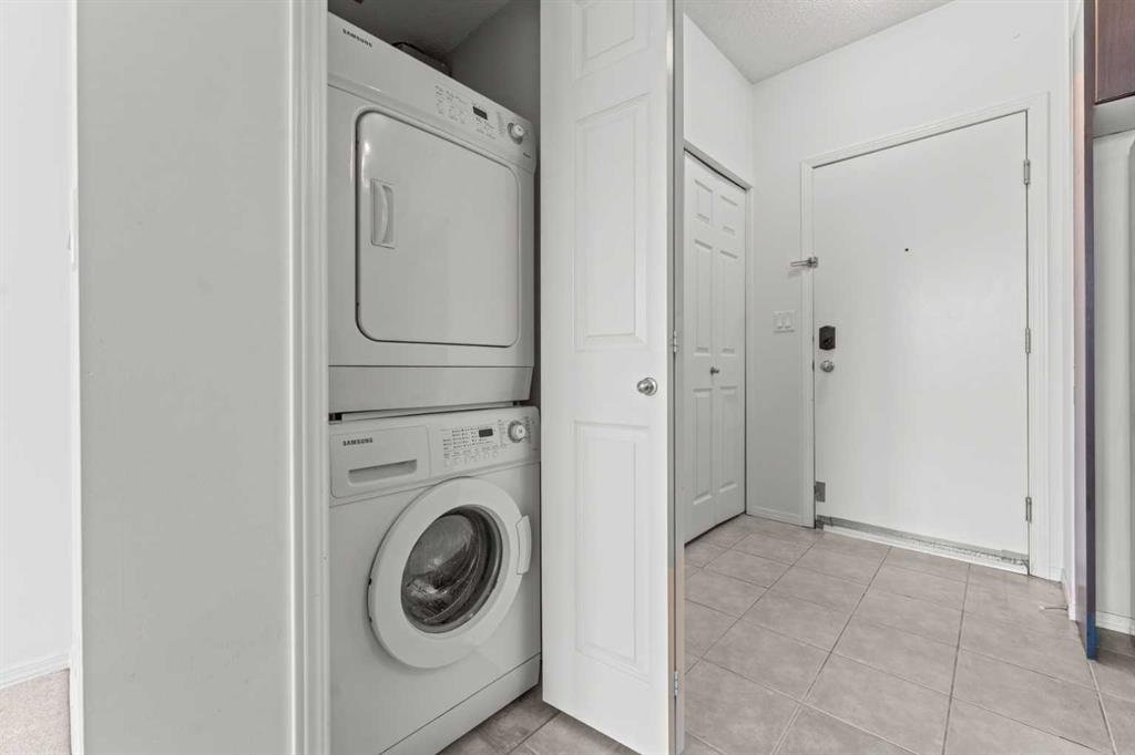 Welcome to Riverfront Pointe, where urban living meets serene riverfront views. This 2 bedroom, 2 bathroom condo offers unobstructed panoramas of the Bow River and pathway system from a spacious private balcony—perfect for morning coffee or evening relaxation. Inside, the open-concept layout features a well-designed kitchen with granite counters, stainless steel appliances, and a large eating bar. The bright living and dining areas are framed by floor-to-ceiling windows, filling the home with natural light and highlighting the remarkable view. The primary bedroom includes a 4-piece ensuite, while the second bedroom and full bath provide flexibility for guests or a home office. In-suite laundry and a custom entertainment unit add everyday convenience.