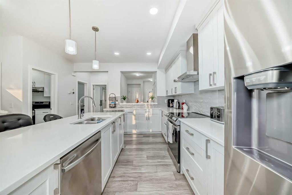 Welcome to 165 Savanna Passage NE, a 2023 built stunning fully upgraded two-storey home with a double front-attached garage and over 3000 square feet total finished area. This beautiful property features a total of 7 bedrooms and 4 full bathrooms, including a main floor bedroom with a full bath, perfect for guests or multigenerational living. The chef-inspired kitchen includes a spacious central island with granite countertops, stainless steel appliances, and an electric range, while the fully equipped spice kitchen offers a gas range and extra prep space. The upper floor boasts 4 bedrooms, 2 bathrooms, a vaulted ceiling bonus room, and convenient upper-level laundry. The fully developed legal basement suite comes complete with 2 bedrooms, a 3-piece bathroom, a separate entrance, and its own dedicated furnace, ideal for rental income or extended family. Additional upgrades include 9-foot ceilings on both the main floor and basement, central A/C, a water softener, and low-maintenance landscaping featuring rock, stone, and concrete (no grass). Located in Savanna, a family-friendly neighbourhood close to schools, playgrounds, parks, shopping centres, restaurants, grocery stores, and transit, this move-in-ready home is under builder warranty and available for immediate possession. A rare opportunity to own a modern, income-generating property in one of NE Calgary’s most desirable communities. Call to book your private showing today!