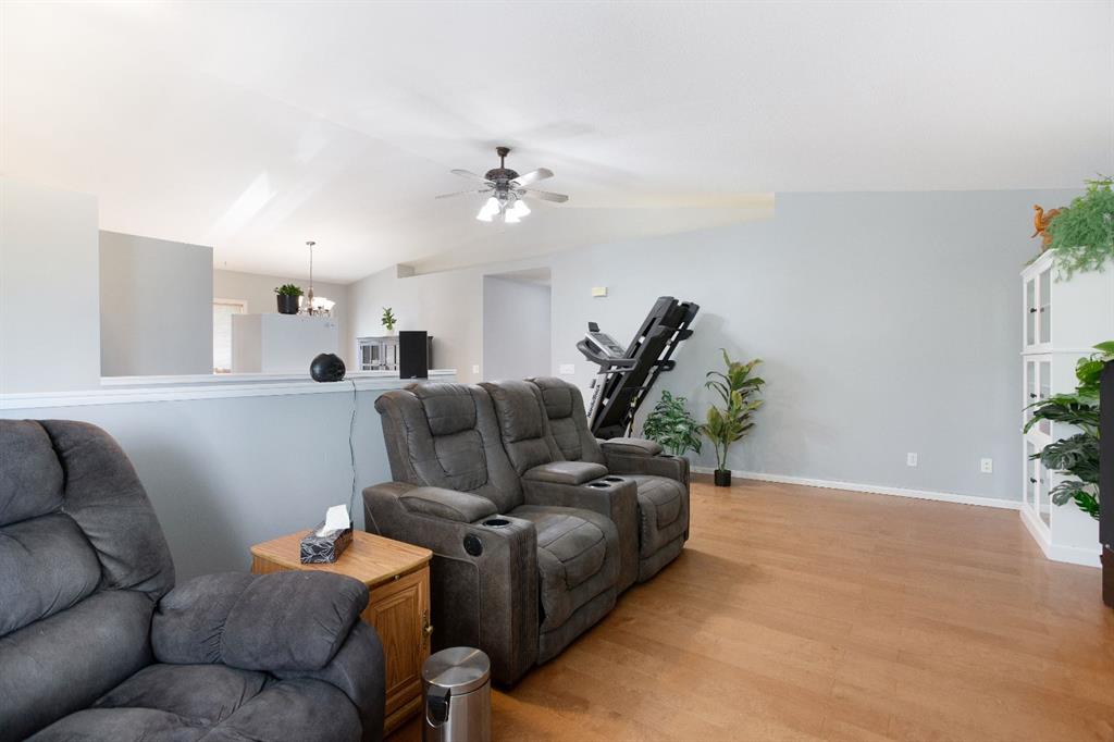 Welcome to the perfect blend of modern comfort and timeless design in this beautifully upgraded bungalow, where your backyard opens directly onto a tranquil green space. This exceptional family home offers 5 generous bedrooms and 3 full bathrooms, providing all the space and convenience you could ever need. Step inside the main floor to find a bright, open-concept layout accentuated by vaulted ceilings. The spacious living room invites you to unwind with a cozy gas fireplace, perfect for curling up beside on a cool winter\'s night. The stylish kitchen is a true highlight, featuring a brand-new 2024 KitchenAid dual-fuel, dual-oven range (warranty included), complemented by abundant counter space, a convenient walk-in pantry, and a reverse osmosis water filtration system with recently replaced filters. The entire interior has been freshly painted (August 2025), and the clean, welcoming atmosphere is completed by beautiful hardwood laminate flooring throughout. The primary bedroom provides a private sanctuary with its own 3-piece ensuite, while the main floor bathroom is enhanced with a relaxing soaker tub. The fully developed basement thoughtfully expands your living space with the added comfort of in-floor heating (serviced in 2024). Downstairs, you\'ll find a versatile recreation room, additional bedrooms, and a full 5-piece bathroom featuring dual sinks—ideal for a growing family or accommodating guests. You can move in with complete peace of mind, thanks to a massive list of 2024 mechanical upgrades ensuring efficiency and reliability: a new high-efficiency furnace, a new air conditioning system, a new water heater, a new humidifier, and additional attic insulation were all recently installed. Exterior improvements include new front deck boards (2023) and a new boardwalk on the north side of the house (2025). Further convenience is provided by off-street and RV parking. Step outside to enjoy a private backyard retreat that backs directly onto the park—it\'s the perfect setting for family gatherings or peaceful evenings outdoors. Offering an exceptional location, this home is close to both Airdrie and the Airport, allowing easy commuting while providing quick access to all the local activities in Irricana. Immaculately cared for and thoughtfully updated, this property truly is move-in ready and represents one of the best values in the area. Book your private showing today to experience all it has to offer!