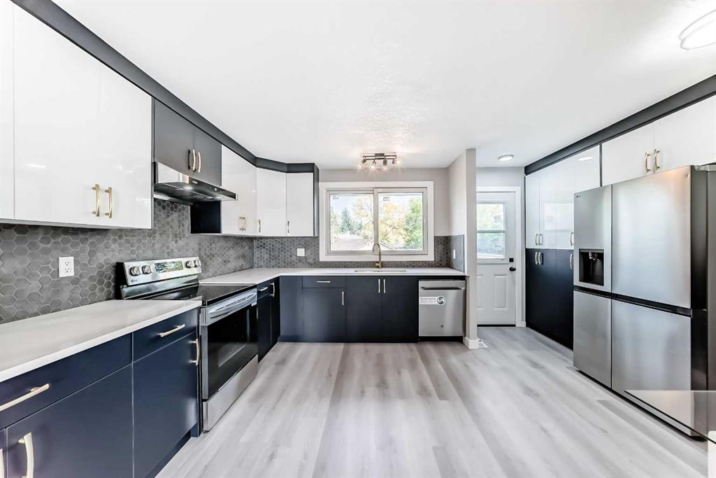 Welcome to this beautifully renovated 5-bedroom, 2-bathroom home in the desirable lake community of Midnapore in Calgary’s southeast. Featuring over 1,950 sq ft of finished living space across four levels, this move-in-ready gem offers the perfect blend of style, space, and location. Step inside to find a bright main floor with luxury vinyl plank flooring, modern lighting, and a spacious living room that opens into a show-stopping kitchen. The kitchen boasts high-gloss white upper cabinets, royal blue matte lower cabinets, soft-close drawers, quartz countertops, a tiled backsplash, new stainless steel appliances, a decorative bistro bar, and custom pantry storage leading to the backyard. Upstairs, you’ll find three bedrooms including a spacious primary suite with a custom walk-in closet and a fully renovated 4-piece spa-style bathroom. The third level offers a huge family room with an electric fireplace feature wall and built-in entertainment space, a large fourth bedroom with a walk-in closet, and a 3-piece jack-and-jill bathroom. The lower level includes a fifth bedroom with egress window and walk-in closet, plus a large utility/laundry room with a brand new washer and dryer, high-efficiency Goodman furnace, and water tank. Upgrades include new triple-pane windows throughout, a new roof, eaves, gutters, fresh exterior and interior paint, new front and back doors, and updated plumbing. Enjoy the newly landscaped front yard, two-tiered rear deck, new fencing, and a double detached garage currently under construction. Located on a quiet street, just steps to Fish Creek Park, schools, shopping, LRT, and with full lake privileges at Midnapore Lake, this is more than a home — it’s a turnkey lifestyle in one of Calgary’s best established communities.