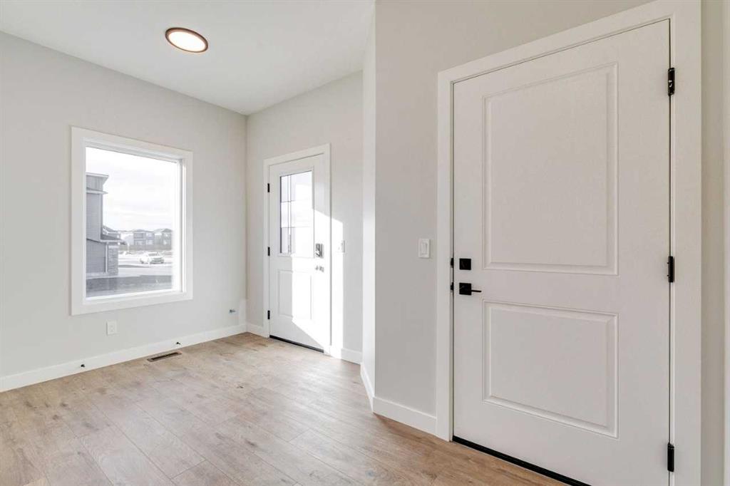 Built by a trusted builder with over 70 years of experience, this home showcases designer-curated interiors tailored to feel personalized to you. The executive kitchen features stainless steel appliances, a gas range with chimney hood fan and microwave tower, Silgranit sink, black faucet, waterline to the fridge, and a spice kitchen with gas range. The main floor offers a full bathroom, a bedroom, and an electric fireplace with wall-to-wall tile, while luxury vinyl plank flooring runs throughout. With a widened garage, walkout basement, and rear 13\'6\"x10\' deck with BBQ gas line rough-in, convenience is built in. Upstairs, the dual primary bedrooms each include an ensuite, with a 5-piece ensuite offering dual sinks and tiled shower walls. Bathrooms are finished with tiled floors and LVP in the laundry. Additional details such as paint-grade railings with iron spindles and 2024 specifications complete this modern, functional paired home. This energy-efficient home is Built Green certified, featuring triple-pane windows, a high-efficiency furnace, and a solar chase for a solar-ready setup. With blower door testing, buyers may be eligible for up to 25% mortgage insurance savings, and an electric car charger rough-in is included for future-ready convenience. Equipped with a full range of smart home technology, the duplex includes a programmable thermostat, Ring camera doorbell, smart front door lock, and motion-activated switches — all seamlessly controlled via an Amazon Alexa touchscreen hub. Photos are representative.*Photos/renderings are of a similar model and are for illustrative purposes; actual home, finishes, and details may vary.