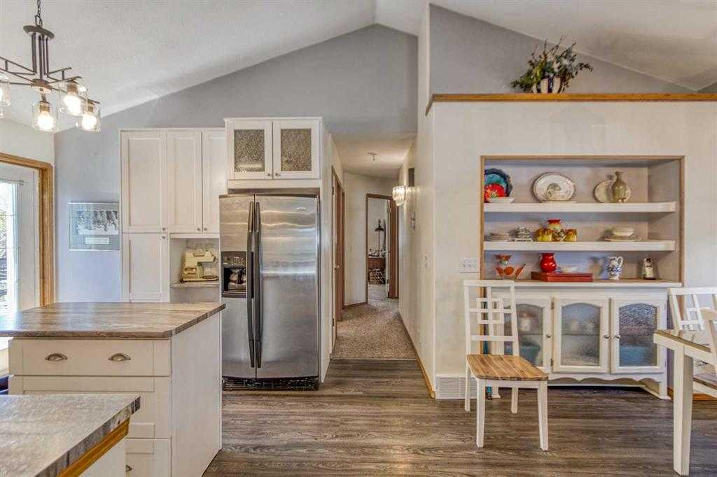 Located in a quiet cul-de-sac in Strathmore’s desirable Greenwood Meadows, this well-maintained home offers 4 bedrooms, 2 bathrooms, vaulted ceilings, and two fireplaces. The fully developed lower level includes a separate entrance, perfect for extended family, or home based business. Enjoy the huge south/west-facing deck, perfect for outdoor entertaining, overlooking a large yard with garden space, RV parking, and room to build a second garage or workshop. The oversized, heated double detached garage adds even more functionality. Upgrades include new shingles (2024), air conditioning, and updated mechanicals. Situated close to schools, sports facilities, shopping, and dining in Strathmore. A rare find with space, privacy, and potential — don’t miss out - call your AWESOME realtor today!