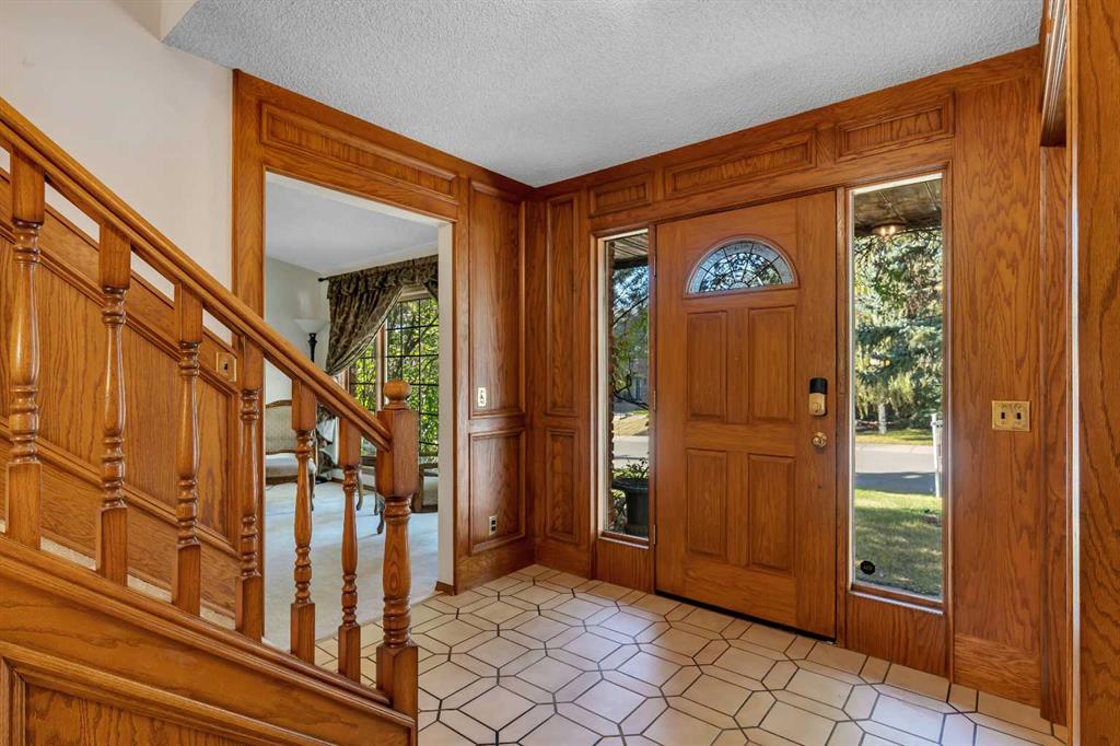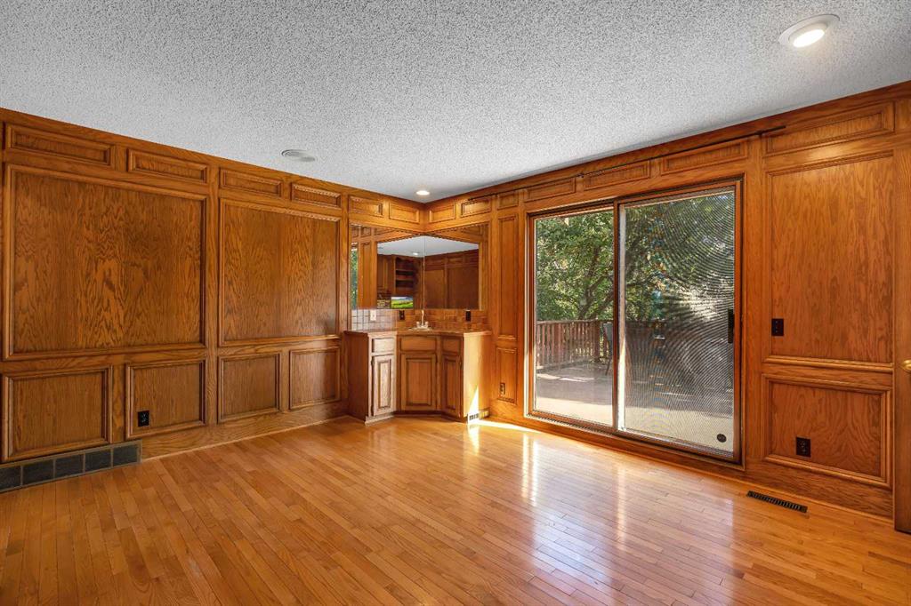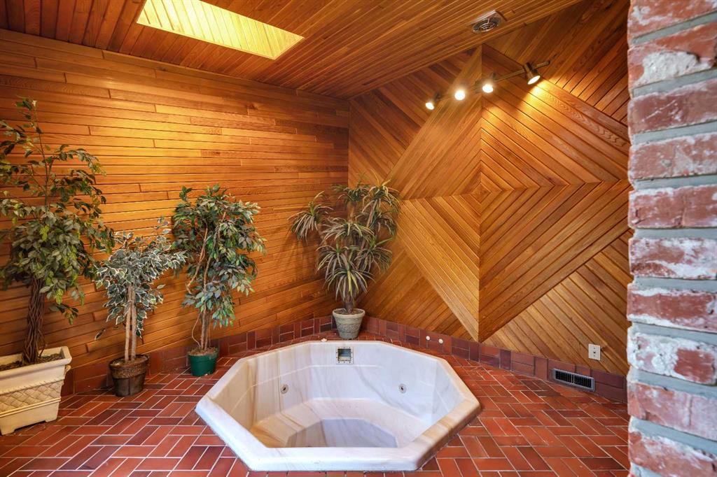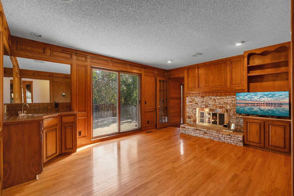 An exceptional opportunity awaits to own a truly unique and charming estate home at the very top of prestigious Edgehill Estates II. Set on an impressively wide front lot on an extremely quiet street with no sidewalk to shovel, this property combines timeless character, rare privacy, and abundant space inside and out. Surrounded by mature trees, including evergreens that lend a cottage-like wooded feel, every window frames greenery while also providing shade and comfort in summer. With over 3600 sq ft of finished living space, the home offers an expansive floor plan designed for family living and entertaining. Step into the stately foyer, with direct access to both the formal dining and living rooms, each showcasing large gridded picture windows that flood the spaces with natural light. The spacious kitchen features granite countertops, abundant cabinetry, and a large breakfast nook with a bay window overlooking the backyard. From here, the home flows naturally into the warm family room, complete with hardwood floors, custom built-ins, a stone fireplace, and wet bar. Off this space lies one of the home’s most unique highlights: a cedar-clad hot tub room with two skylights and a patio door to the deck, offering an amazing retreat. A 2-piece bath and laundry complete the main floor. Upstairs are four generous bedrooms, including a primary retreat with a large walk-in closet, granite-topped ensuite, and direct access to an extra-long balcony. With two sliding doors, this balcony spans the width of the home and provides a beautiful tree top view. A smaller wood-paneled bedroom, also opening onto the balcony, is ideal for a private home office. A second full bath with a double vanity and granite counters serves the level. The fully finished basement extends the living space with a massive recreation room, fireplace with built-in shelving, a very spacious fifth bedroom, full bath, and ample storage. In total, the home features four sliding patio doors, two on the main floor leading to the oversized back deck and two upstairs to the balcony. Creating a seamless indoor-outdoor connection. Outside, the oversized lot offers outstanding curb appeal, extensive garden beds for the avid gardener, and a private backyard oasis perfect for gatherings or quiet relaxation. Recent upgrades include a newer roof (2024) and water tank (2021). Additional highlights include expensive cedar siding that enhances the home’s unique charm, a double attached garage with multiple access points, and a setting just steps from Nose Hill Park, top-ranked schools, and all the amenities of Edgemont. This is more than a house, it is a rare chance to own a private estate home on one of the quietest streets in Edgemont. Book your showing today and experience it for yourself!