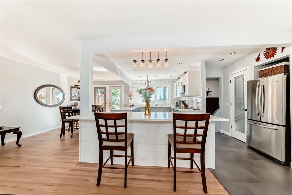 Welcome to this beautifully updated bungalow located in a quiet cul-de-sac in Silver Springs, Northwest Calgary. Boasting a huge South-facing backyard, this property offers two spacious decks perfect for relaxing or entertaining, along with an open view over the surrounding community. Step inside to find a home that’s been thoughtfully renovated and upgraded over the years. Recent improvements include a new front walk (2015), 25-year shingles and roof vents (2015), and fresh windows throughout (2015) in the three bedrooms, ensuite, and kitchen, providing plenty of natural light. The kitchen itself underwent a major transformation in 2021, with a complete renovation featuring sleek quartz countertops and an engineered beam added in 2020 after removing three walls to create a more open and inviting space. Additional updates include new carpets in the two bedrooms and basement (2022), fresh paint both inside and out (2021), and new front landscaping (2023), all contributing to a modern, move-in ready feel. The high-efficiency furnace, installed in 2013, ensures comfort and energy efficiency year-round. The basement bathroom was also fully renovated in 2022. For those with a love for convenience, the garage features two new openers (2020), both app-compatible with MyQ, allowing for easy control of your garage doors. In 2025, the main floor received new flooring, and both bathrooms, including the ensuite, were completely renovated with matching quartz countertops for a clean, cohesive look. Outside, the garden shed was re-shingled in 2025, and new garden doors were installed in 2023, enhancing the overall charm and functionality of the property. Even the front picture windows were replaced with triple-pane glass in 2023 for better insulation and soundproofing. This home truly has it all—updated, well-maintained, and ideally located in one of Calgary’s most desirable neighbourhoods. Don’t miss out on the opportunity to make it yours!