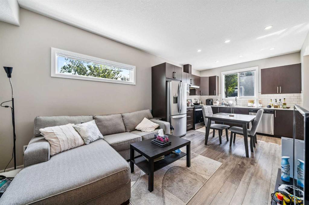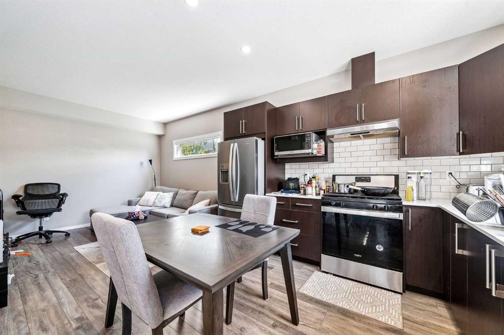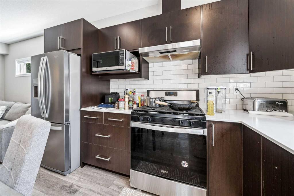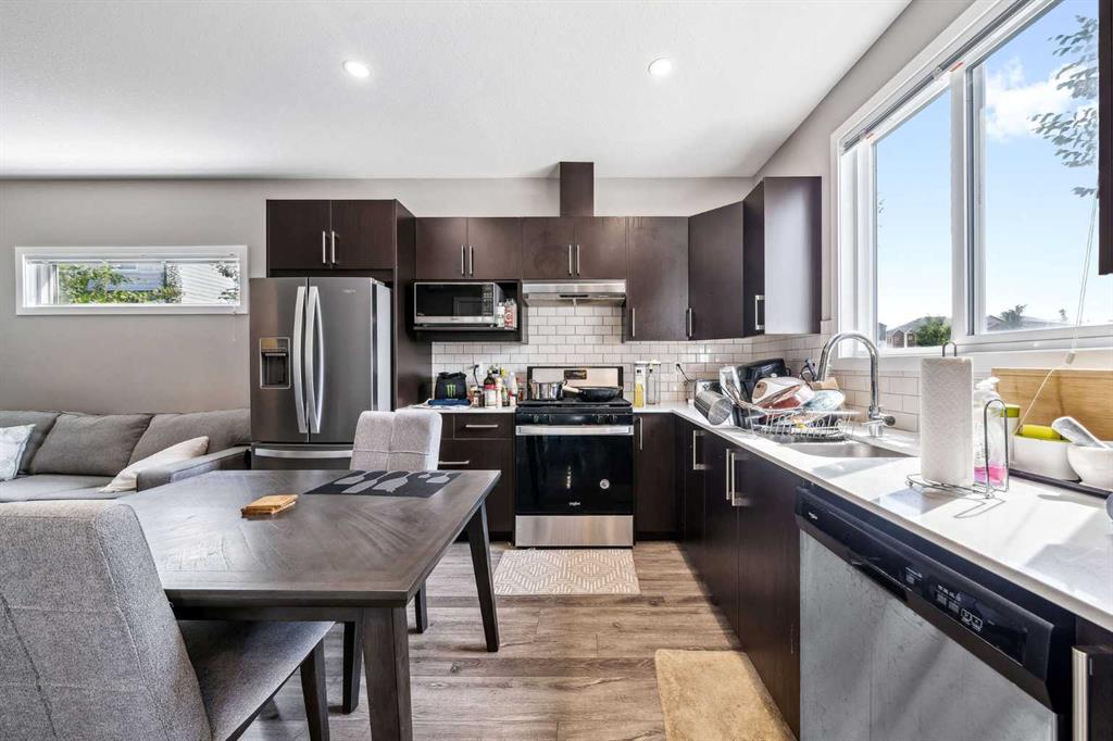 TURNKEY INVESTMENT OPPORTUNITY!!! INVESTORS & FIRST TIME HOME BUYERS! One of the best locations in the complex! Here is an opportunity to own a corner unit, siding onto greenspace, 1 bed 1 bath main floor townhome with low condo fees in the desirable community of Redstone. As you step into this open concept townhome you will be greeted with contemporary finishings throughout. The kitchen is fitted with thick stone counters and a stainless-steel appliance package including a gas stove. The kitchen opens onto the living and dinning area with large windows providing plenty of natural light. The primary bedroom it’s a good size with another large window and closet, and conveniently located near the full bath. as well as the laundry is conveniently located on this level. There is insuite laundry, an assigned parking stall with plug in, as well as plenty of street parking right outside your door. This home is perfect for those seeking both style, comfort, and convenience. As well as an amazing location with quick access to parks, the ring road, international airport, and upcoming schools and transit…and a family friendly complex with its own playground!