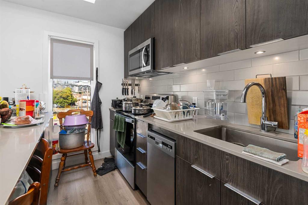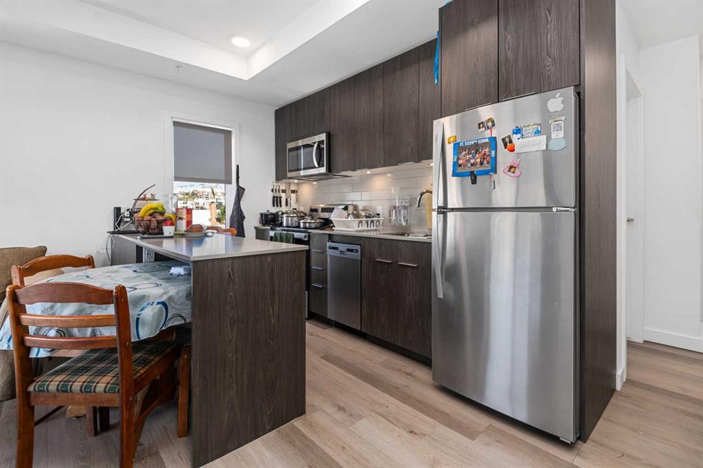 This stunning top-floor Northwest corner condo in the sought-after Era building offers 640 sq. ft. of stylish living with 2 bedrooms, 2 bathrooms, and sweeping downtown views. Flooded with afternoon light, it’s an ideal space for contemporary urban living in the heart of Bridgeland. The bright, open layout seamlessly connects the kitchen, dining, and living areas, creating a space that’s perfect for entertaining or enjoying a cozy night in. Large windows frame the skyline and fill the home with natural light, enhancing its airy feel. The kitchen blends style and function with sleek quartz countertops, stainless steel appliances, ample cabinetry, and a versatile island that provides extra prep space and casual seating. Whether you’re hosting or grabbing a quick bite, this kitchen delivers. Both bedrooms are generously sized for comfort and flexibility. The primary retreat features a private ensuite with modern fixtures, while the second bedroom can serve as a guest room, home office, or additional living space. The second full bathroom is equally well appointed with contemporary finishes and quality details. Residents of Era enjoy premium amenities including a rooftop terrace with skyline views, secure underground parking, and a pet-friendly environment. Located in the vibrant community of Bridgeland, this home offers unmatched walkability. Step outside to find trendy cafés, acclaimed restaurants, boutique shops, and the Bow River pathway system. Downtown Calgary is just minutes away, making this location as convenient as it is exciting. Whether you’re looking for a sun-filled urban home or a smart investment in one of Calgary’s most desirable neighbourhoods, this condo offers the perfect balance of comfort, design, and location. Don’t miss your chance to make it yours.