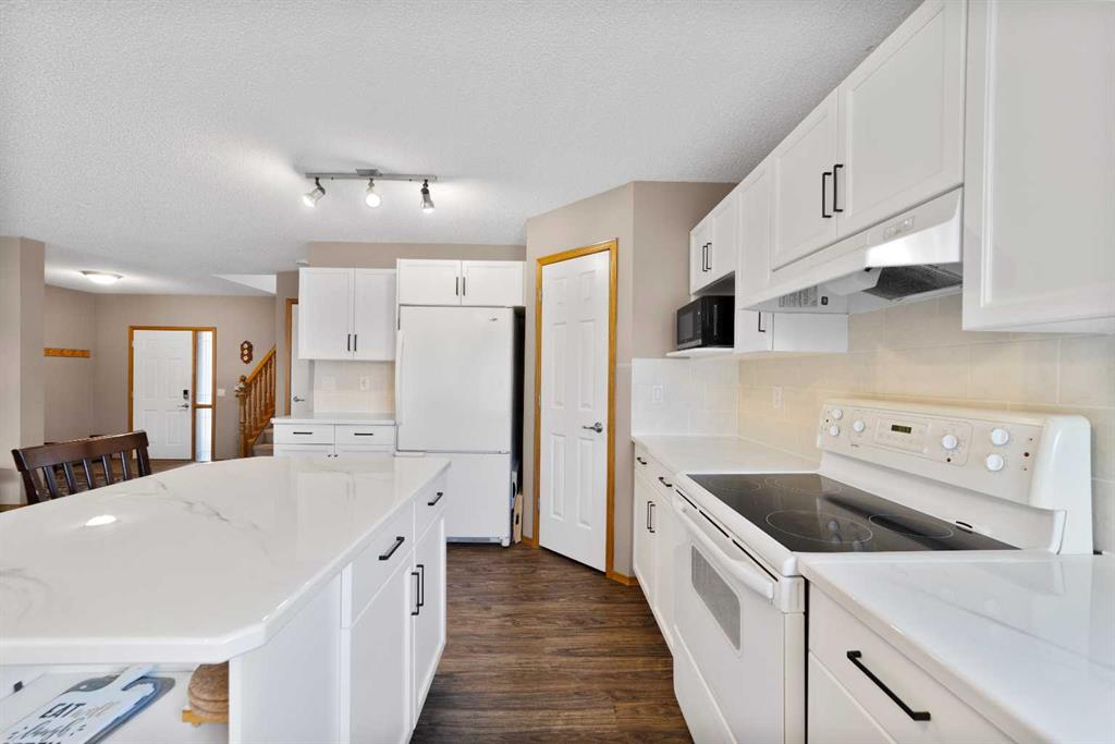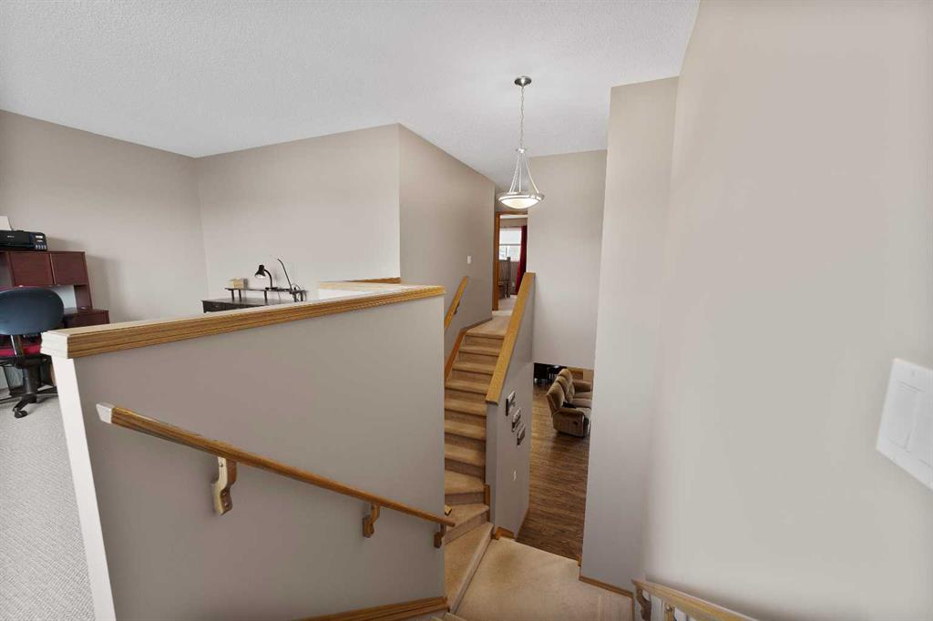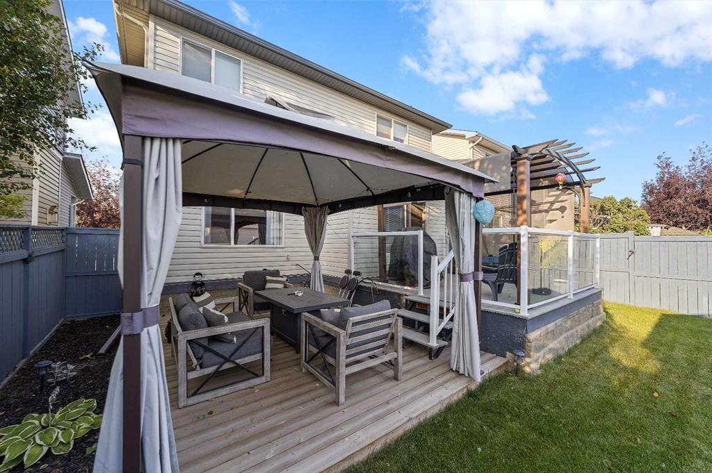 THIS COULD BE YOUR NEXT HOME! If you are looking for a very well maintained and CLEAN home in the quiet Stonegate area of Airdrie, you will want to check out this property! This 2 storey home has seen many upgrades in recent years including: new flooring on the main level and bathrooms, some newer carpeting, CENTRAL AIR, Shingles in 2014, Furnace in 2016 & Hot water tank in 2021. The main level has a lovely kitchen with gleaming new epoxy countertops, pantry, island with eating bar and a dining area that opens to the private back yard. The living room has a cozy gas fireplace and there is also main floor laundry & half bath. Head upstairs and you will really appreciate the large BONUS ROOM on the way to the upper level-this allows extra space for large families or even a large office space if you work from home. The upper level has the primary bedroom with a large walk in closet and ensuite with jetted tub/separate shower. There are also 2 other bedrooms and a full bathroom. The fully developed basement has a family room with large wet bar (other) and another gas fireplace. There is also another full bath, a craft room/den and the mechanical room. The backyard has a shed and a multi level deck with 2 gazebos that are included- making this is a really private, serene area to sit and relax after the day. You do not feel like you are in the city back there! The previous owner did have it open for RV parking and with modification could have that again. There is a heated double attached garage and concrete driveway so there\'s no shortage for parking here either. This home is ready for you to move right into and is waiting for it\'s next family. Call today to schedule your viewing of this impressive property!