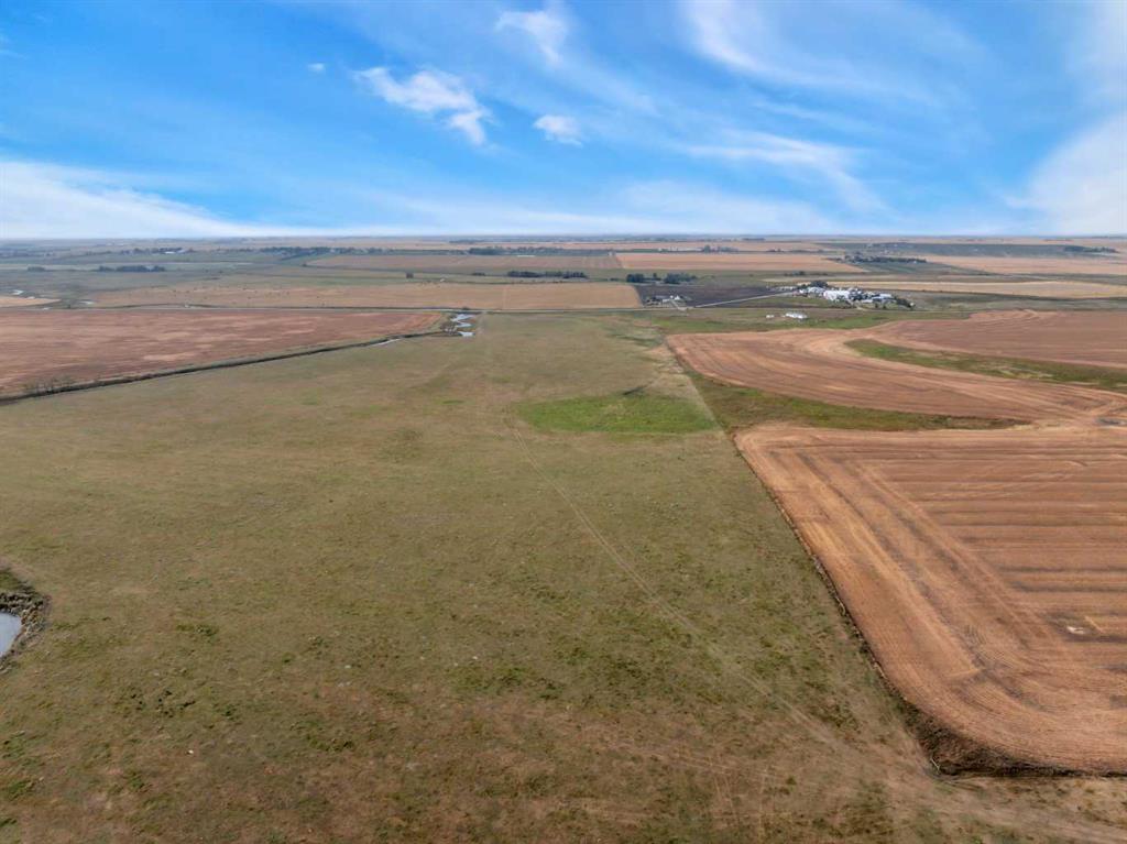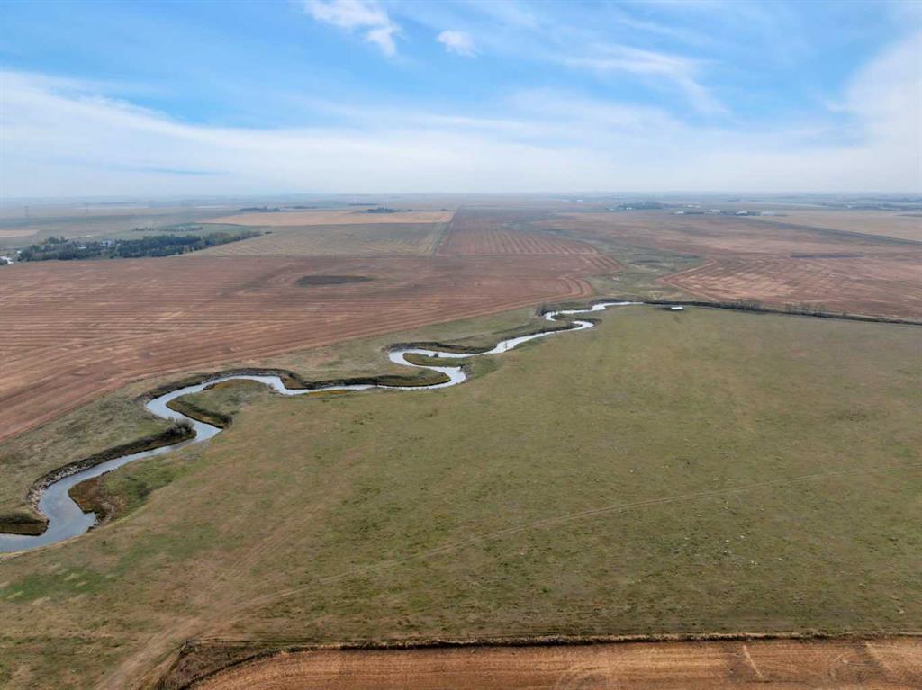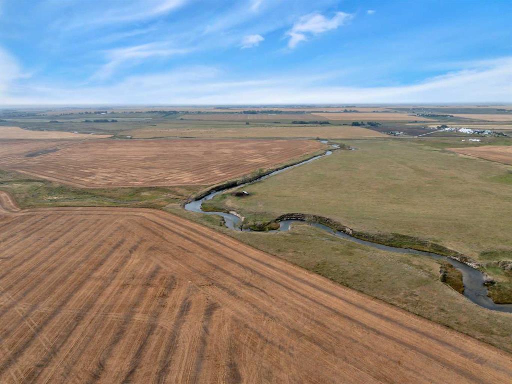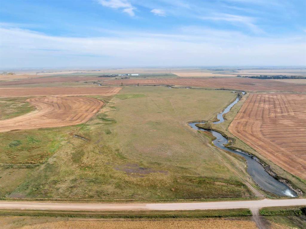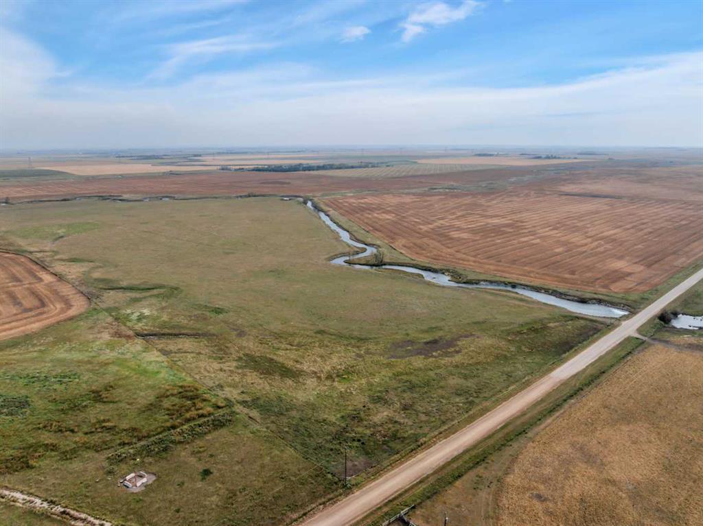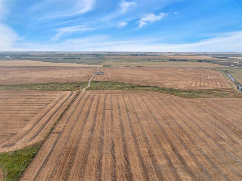 Incredible INVESTMENT OPPORTUNITY! Just 10 minutes east of Calgary, this 141-acre parcel offers exceptional potential in an unbeatable location—only 2 miles from Delacour and 2 miles off pavement. This parcel is a fantastic opportunity to expand your land base, build your dream home or hold for future development. 141.10 acres mixed agricultural land (full 160 acres less untitiled WID Service Berry Irrigation System). +/-125 arable acres (currently 60 acres seeded to pasture on North end of parcel, balance of cultivated land 2025 pea crop, 2024 soft white wheat) plus 16 acres of coulee. Fully fenced on West and North sides, cross-fenced inside quarter to follow canal.