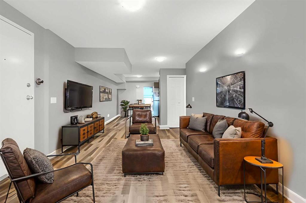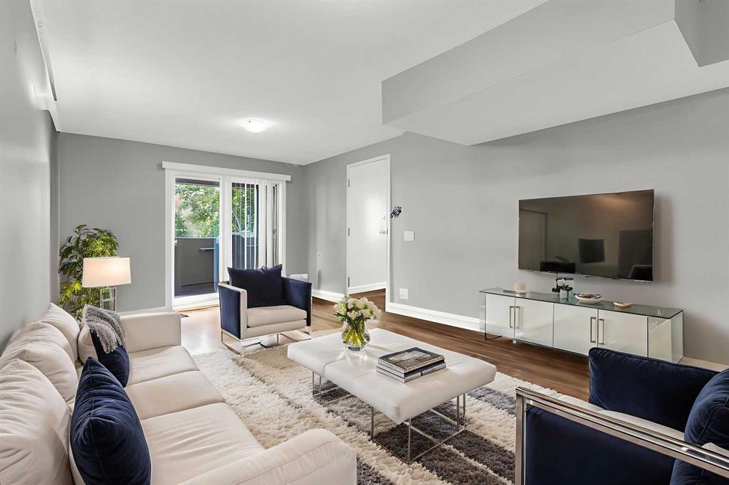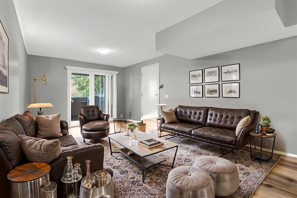 Incredible opportunity for first-time buyers, investors, or those looking to downsize. This charming 1-bedroom condo offers over 632 sq ft of living space with a private entrance and side porch. The open-concept layout flows seamlessly from the living and dining areas to a large, private, covered balcony — perfect for your morning coffee. The bright and spacious primary bedroom features large windows overlooking the balcony and generous closet space. The updated  kitchen includes sleek cabinetry, newer stainless steel appliances, and a stacked washer and dryer conveniently located in the utility room. Additional upgrades includes a newer furnace and hot water tank. Enjoy the convenience of 1 Assigned parking stall*** (#11) included in condo fees. Located just minutes from downtown, schools, parks, shopping, and public transit, with quick access to Trans Canada, McKnight and Deerfoot Trail. Move-in ready with an excellent value and priced to sell — book your showing today with your favorite Realtor!