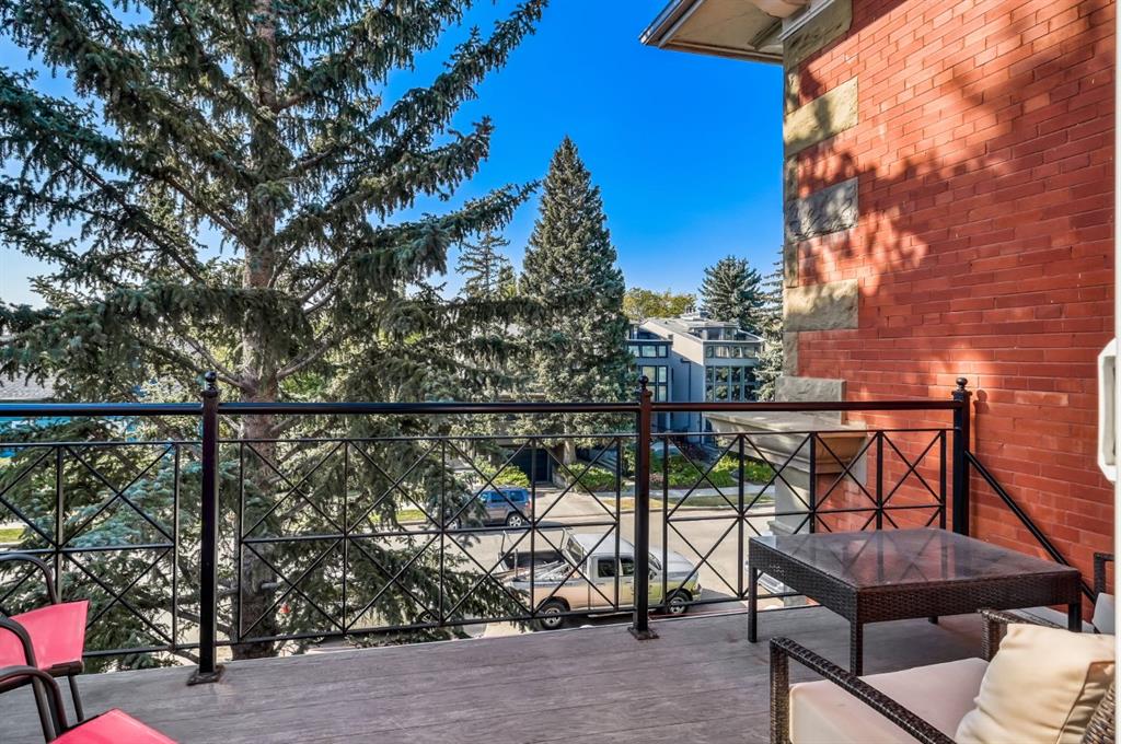 Designed over two expansive levels, this unique home features soaring 12 foot ceilings on the main floor, beautiful hardwood flooring, and an abundance of natural light through oversized windows, skylights, and French doors. The elegant living and dining areas open onto a spacious west facing balcony, while the sunlit kitchen and family room at the rear of the home flow out onto your private deck, perfect for morning coffee or evening entertaining. Upstairs, a stunning skylit staircase leads to two generously sized bedrooms, both with vaulted ceilings, private ensuite bathrooms, and individual balconies. The primary suite also boasts an attached office that could easily be converted into a 3rd bedroom. Additional features include a common elevator, a private back entrance with mudroom and laundry/storage area, plus a rare double detached garage with a massive (over 400 sq/ft) rooftop deck ideal for taking in the serene surroundings. Situated in one of Calgary’s most desirable communities, this one of a kind home offers the perfect balance of heritage charm and contemporary sophistication.