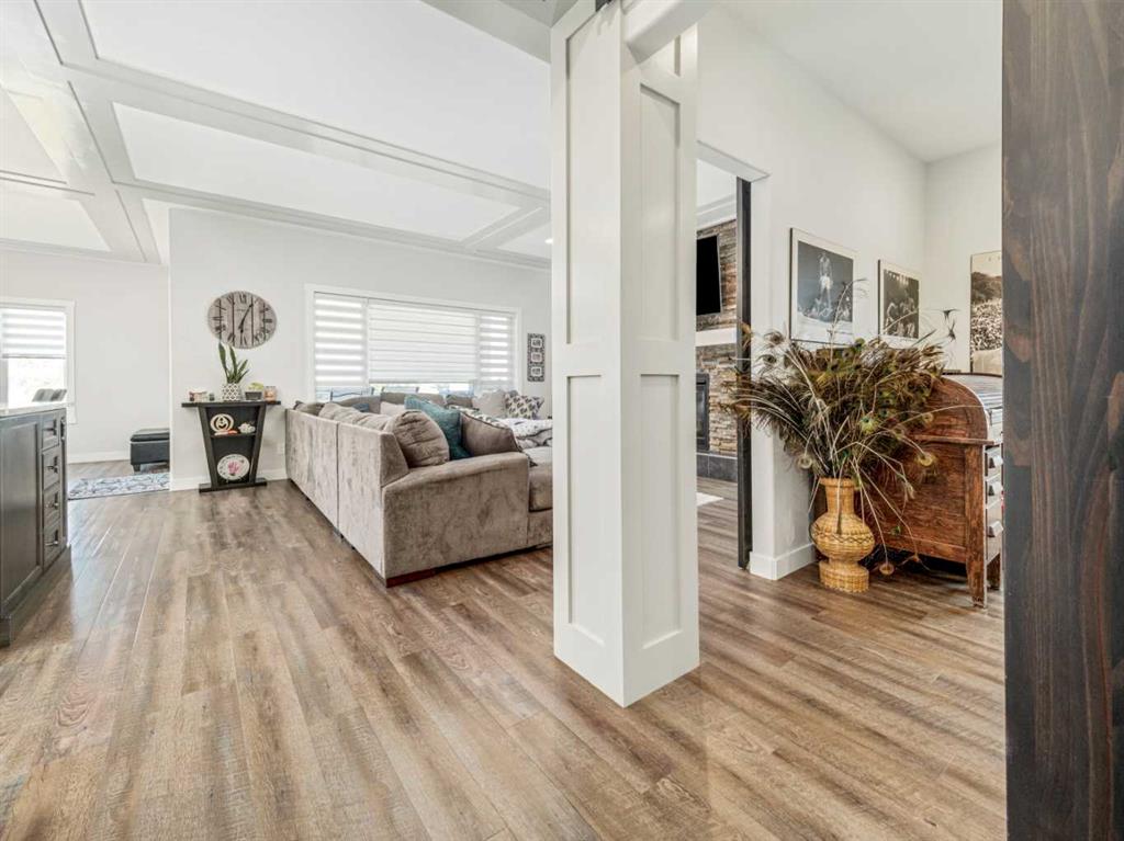BIG & BEAUTIFUL! Large two storey home in Sixmile neighbourhood with more than 4100 SQUARE FEET of living space for the family! Large welcoming entry with staircase open to above. Main floor features vinyl plank flooring and high ceilings. Main floor has office with barn doors that close off to hallway and living room. Living room features gas fireplace with floor to ceiling stone wall feature and mantle. Kitchen is large and has beautiful white cabinets, granite counters with large island, stainless steel appliances with gas range, and a large pantry that leads to a mudroom with hooks, cubbies, and shelves. Dining room is also big and has a door to the covered deck out back. A 2 piece bathroom completes the main. Second floor features 3 large bedrooms including primary with walk-in closet and 5 piece ensuite that features double sinks, separate tub and shower, and a toilet closet. Primary bedroom also has a door to a balcony. Second level also has a large bonus room that also has a door to the balcony. There is also a laundry room that can be accessed from the hallway or walk-in closet in the primary bedroom. Another full 5 piece bathroom with double sinks and tub/shower combo complete this level. Basement is fully developed with a family room that has a gas fireplace with stone surround and custom built-ins. There are also 2 more big bedrooms and another full bathroom. Home has a 2 zone furnace for upper level and main for comfort. Convenience of central a/c. Yard is fenced and landscaped with underground sprinklers. Large 22x32 garage for your vehicles! Quiet corner lot and sellers say they have amazing neighbours! Move in and enjoy!