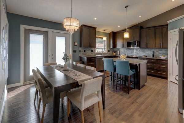 Welcome home! This beautifully maintained property offers the perfect blend of space, comfort, and style. Featuring 5 spacious bedrooms and 3 full bathrooms, there\'s room for the whole family. The inviting main level boasts gleaming hardwood floors and vaulted ceilings, creating a bright, open atmosphere. The primary suite includes a walk-in closet and private retreat feel. Enjoy cooking in the chefs kitchen with stainless steel appliances, a large pantry and huge kitchen island. Outside you will find a large deck and landscaped yard, perfect for quiet evenings or hosting friends and family. The finished basement provides additional living space for family, hobbies or a home theatre. Car enthusiasts and hobbyists will love the extra-large heated garage, offering plenty of room for vehicles, tools and storage. Located in a sought-after neighborhood close to schools and parks, this home combines convenience with an executive lifestyle. Don\'t miss your chance to own this incredible property.