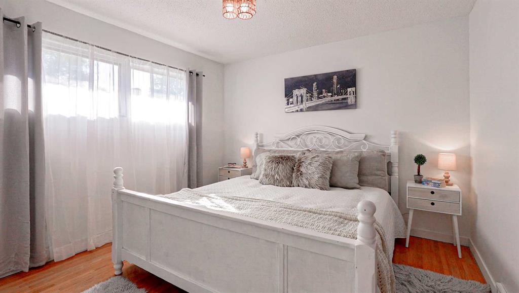 This inviting bungalow is tucked into a quiet neighborhood just steps from a park, walking trails, shopping, and schools. The main floor has been thoughtfully updated with a modern kitchen, bathroom, and flooring while still showcasing original hardwood in the two bedrooms. The fully developed basement expands your living space with a cozy family room, two additional bedrooms, a 3-piece bathroom, and plenty of storage. Comfort comes easy with newer A/C, furnace, and shingles.
