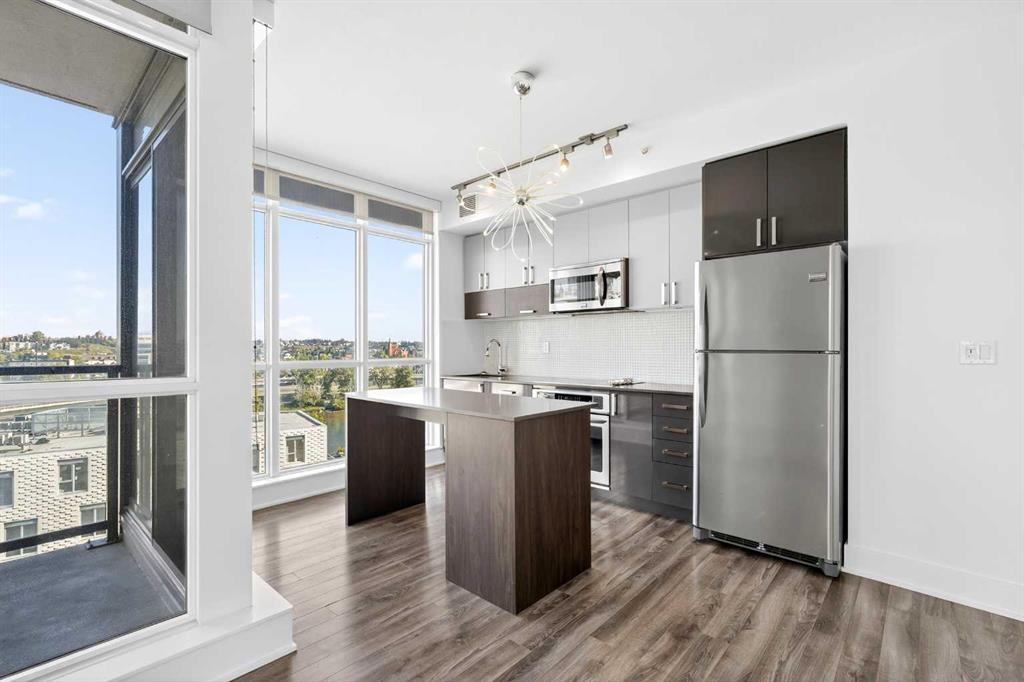 This unit also comes with a titled underground parking stall. Building amenities include a Rooftop Sky Lounge with full kitchen, meeting/game room, Creative Room, pool room, Wi-Fi Cafe, Yoga Studio, Residents Gym, and Guest Suite. Steps from SuperStore, Studio Bell, Riverwalk Path, trendy eateries, boutique shops, Saddledome, Downtown Library, and C-Train, this apartment combines city living with scenic beauty.