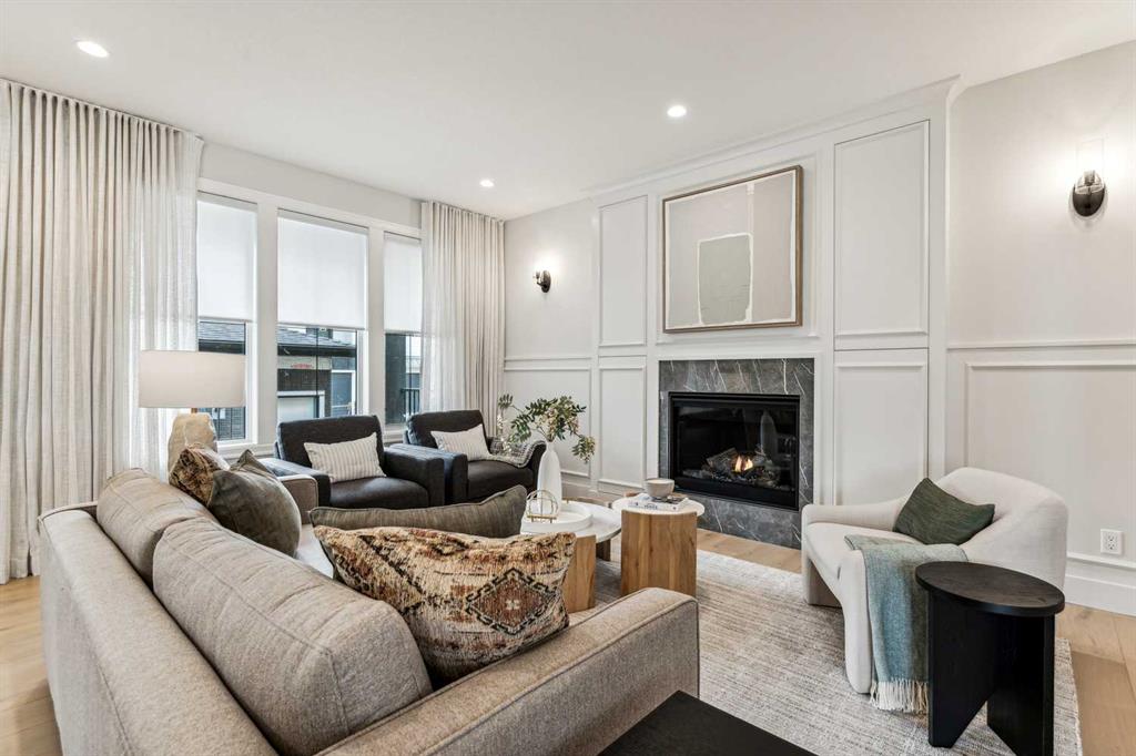 Welcome to this exquisitely crafted residence by Homes By Us, where timeless design meets modern luxury. Located in the highly sought-after community of Currie Barracks, this home presents a rare opportunity to invest in both elevated living with a whole extra level which is ideal for multigenerational living, office space, or a private guest retreat. Inside, every detail has been thoughtfully curated. The gourmet kitchen is a chef’s dream, anchored by striking Dekton countertops and full-height backsplash, combining refined aesthetics with superior durability. The powder room exudes contemporary elegance with a bold apron sink and wall-mounted toilet, creating a sleek, minimalist look. Full height glass walls accent the den on the main floor as well as the fitness space in the basement, allowing natural light to flow while maintaining separation and style. Upstairs, you’ll find three generous sized bedrooms, including a sophisticated primary suite designed for relaxation and function. The fully developed basement expands your living options with an additional bedroom—perfect for guests or a home office. This home is complete with full landscaping and fencing, offering a private outdoor space without maintenance. Enjoy more time living in this vibrant area by stepping outside your door and into one of Calgary’s most walkable, park-filled communities. Whether it’s a stroll through nearby green spaces, a visit to local cafés, or a quick commute downtown, Currie offers urban living at its finest. This is more than just a home—it’s a lifestyle investment, combining architectural excellence, and everyday ease. Don’t miss your chance to make it yours! Please note this is a showhome, with regular showhome hours. Come by and visit Monday-Thursday 2PM-8PM or Sat/Sun Noon-5PM.