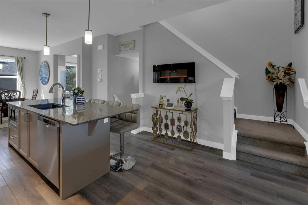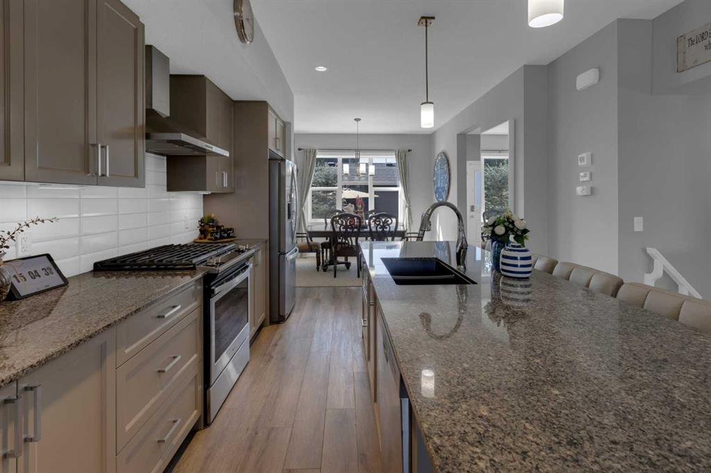 Look no further, you just found your new home! This well-maintained corner townhome is located in the heart of the community of Midtown. This exceptional property enjoys a setting of peaceful walking paths that meander around the tranquil pond. You will also enjoy the extended greenspace directly in front of the property perfect for the kids to run and play. This home offers plenty of space for the growing family with 3 bedrooms on the upper floor and a fourth in the basement. The bedrooms are accompanied by 3.5 bathrooms allowing the busy family to easily get ready for their day. The chef in the family will enjoy the well-appointed centralized kitchen with a large island accented with granite counter tops. To put the cherry on top the kitchen has stainless steel appliances which includes a gas range! The layout is perfect for entertaining with the living room on one side of the kitchen and the dining area on the other with more seating at the island for large gatherings. In the basement you will find it fully finished with a rec-room perfect for movie nights. This home being a corner unit offers extra windows allowing plenty of natural light. If all this wasn\'t already enough… This home also offers a double detached garage plus an additional gravel parking pad that could be used for RV storage. This property will not disappoint?, book your showing today!